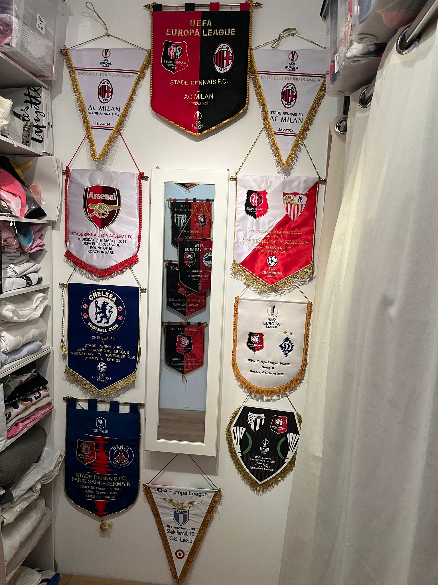 - В настоящее время у меня в коллекции 130 игровых маек клуба и около 30-ти вымпелов с европейских матчей. Технически, к сожалению, не могу показать в одном фото всю коллекцию здесь и сейчас, но я в поиске этого решения на будущее.