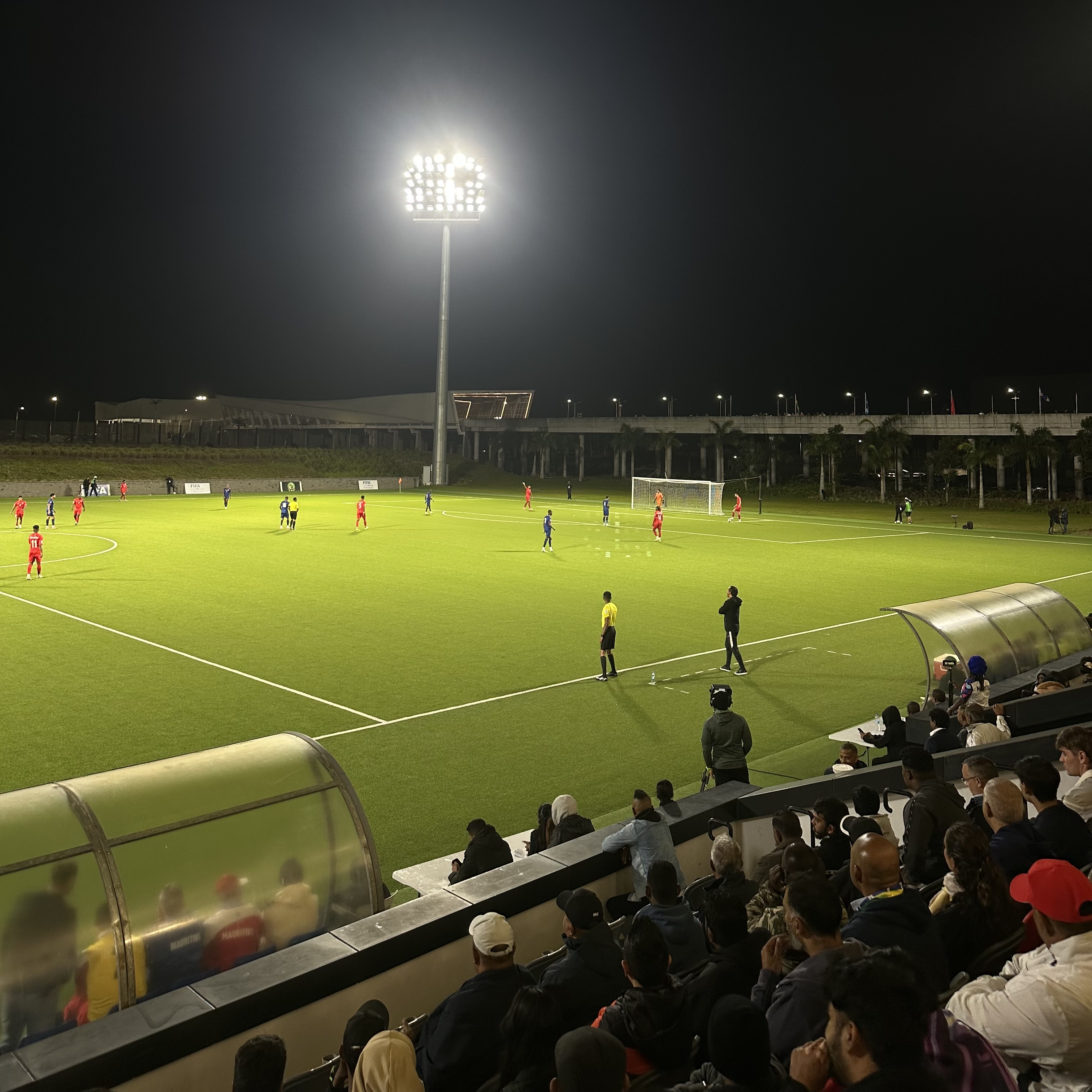 Билеты проверяли вручную, осмотра не было. Пройдя короткий тоннель я замер, а потом невольно рассмеялся. У стадиона была всего одна трибуна, за воротами и напротив трибуны – пустота и пальмы.