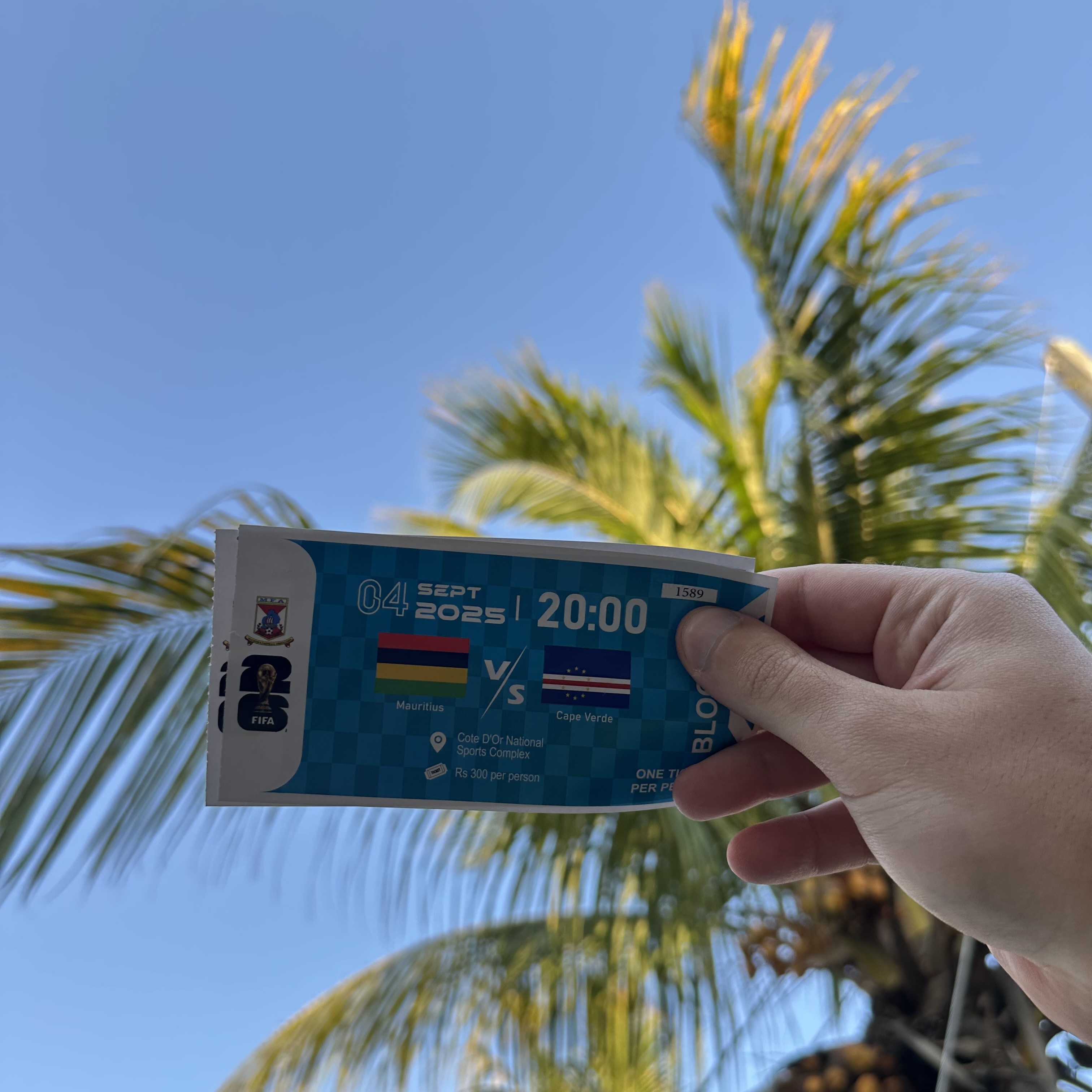 На запрос о билетах на матч Google выдавал только авиабилеты из Маврикия в Кабо-Верде, без единого намека на футбол. Как оказалось, у футбольной федерации даже нет своего сайта. Нашлись только соцсети, за которыми я начал следить. За неделю до матча там наконец-то появилась информация о продаже билетов в разных частях острова. Не раздумывая, поехал в одну из локаций. Билеты продавались в обычном продуктовом магазине! Вместе с хлебом, водой, яйцами и прочими товарами. Причем сразу на два матча: Сейшелы – Габон, Маврикий – Кабо-Верде.