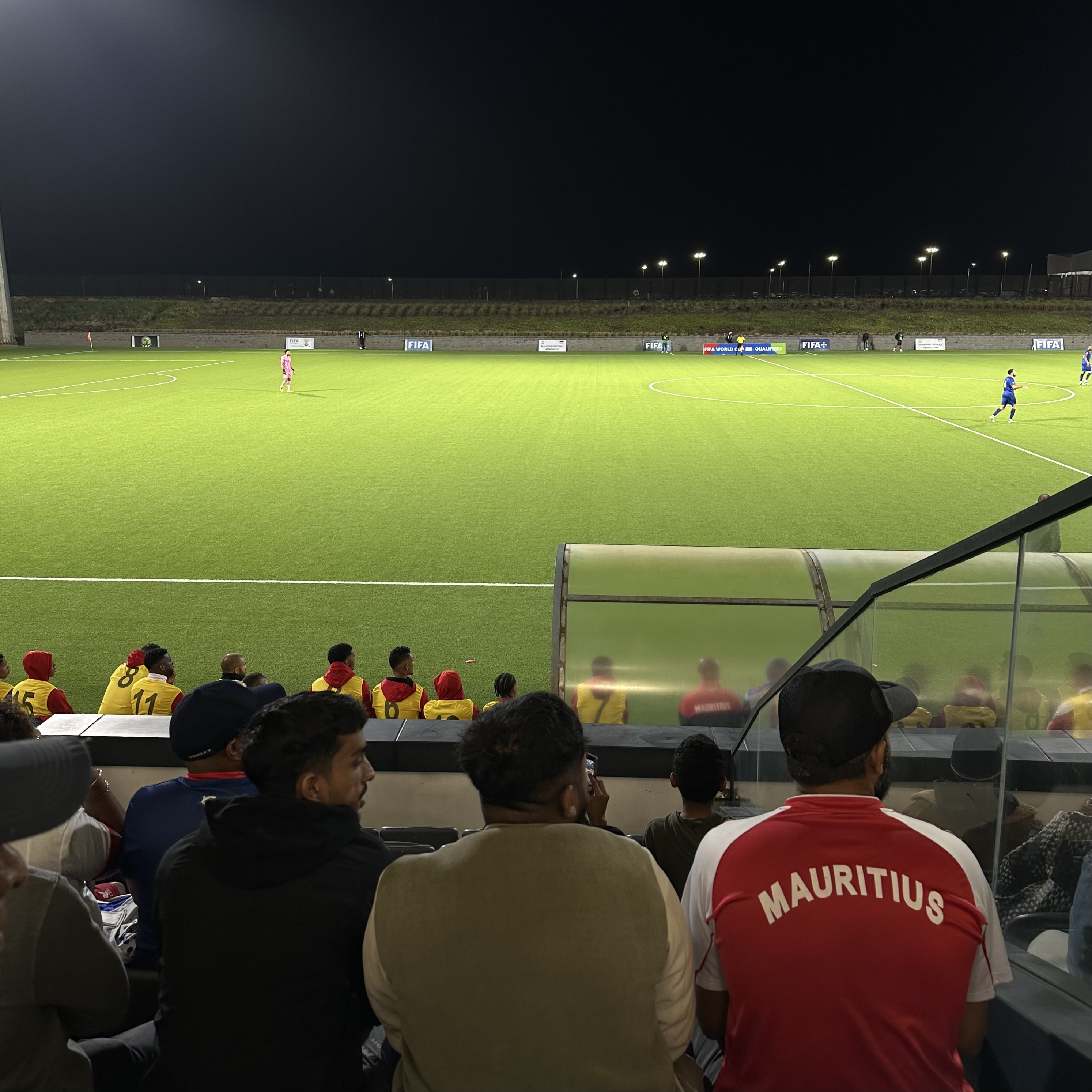 Трибуны завелись после серии ошибок сборной Маврикия, и я заметил, что на стадионе вообще нет полиции и всего несколько стюардов. Первый тайм так и завершился с минимальным преимуществом Кабо-Верде.