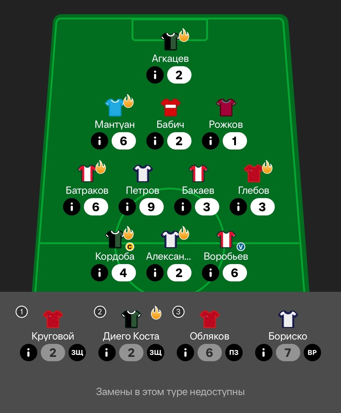 Итоги 7-го тура: Батраков дебютировал в моей команде с ассиста, Кордоба снова с голом, но подбил статистику удалением, Воробьев продолжает радовать