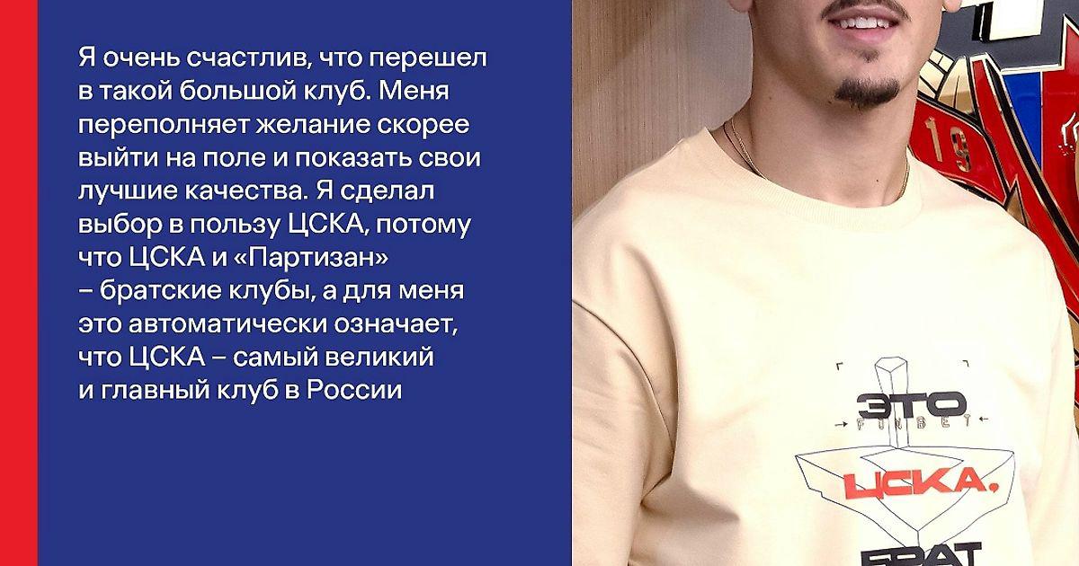 «Я очень счастлив, что перешел в такой большой клуб. Я сделал выбор в пользу ЦСКА, потому что ЦСКА и «Партизан» - братские клубы, а для меня это означает автоматически, что ЦСКА - самый великий и главный клуб в России», - приводит слова Поповича пресс-служба ЦСКА.