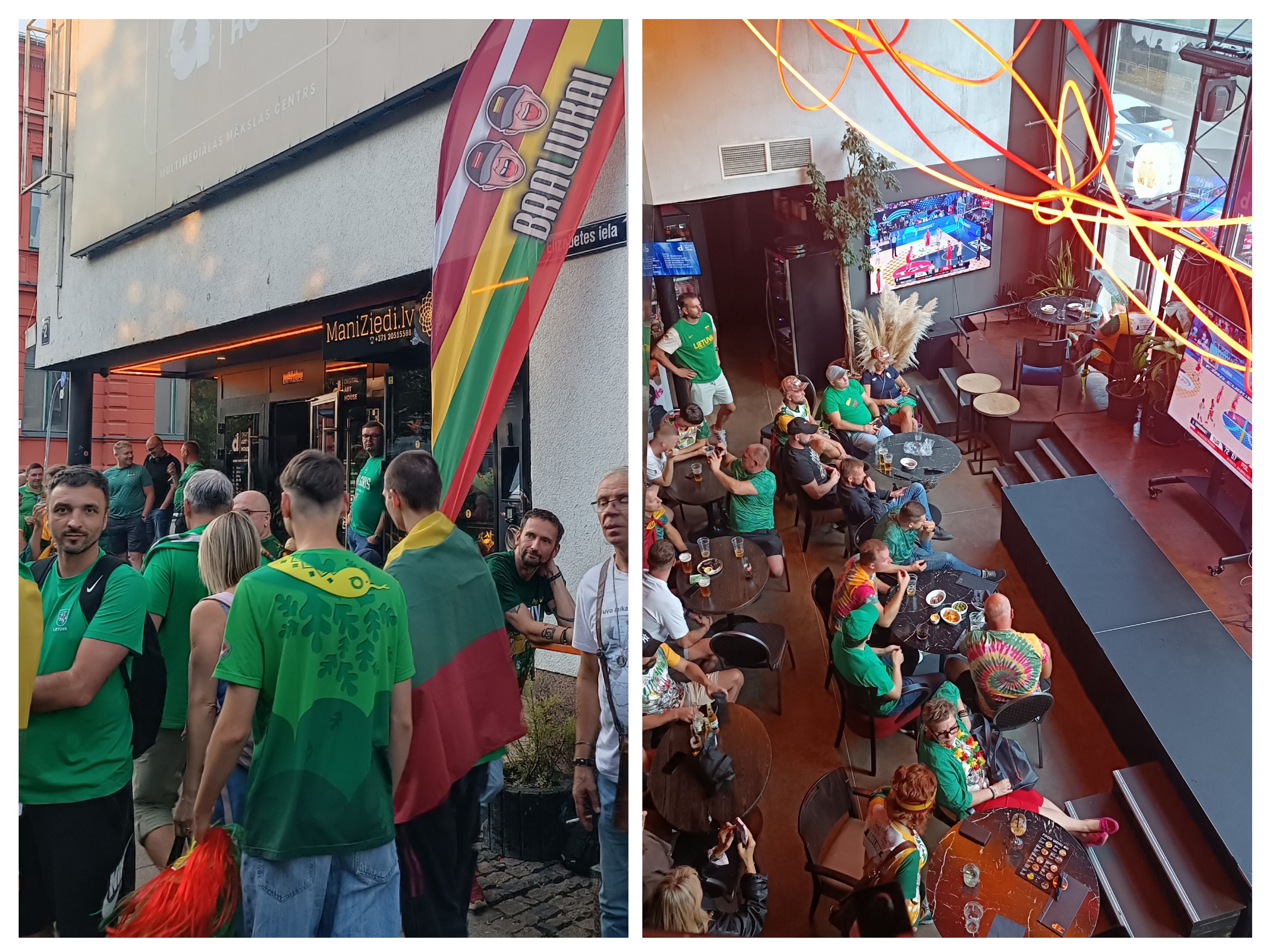 Они не просто заполнили местную арену — на один день разбудили, взбудоражили и преобразили внешне умиротворенный, живущий своей жизнью город. Апогеем этого стала спланированная акция болельщиков. Перед игрой литовцы встретились в условленном месте: известные во всей Прибалтике фанаты баскетбола, братья-близнецы Мачюсы, на время турнира оборудовали художественный центр рядом с кафедральным собором в спорт-бар.