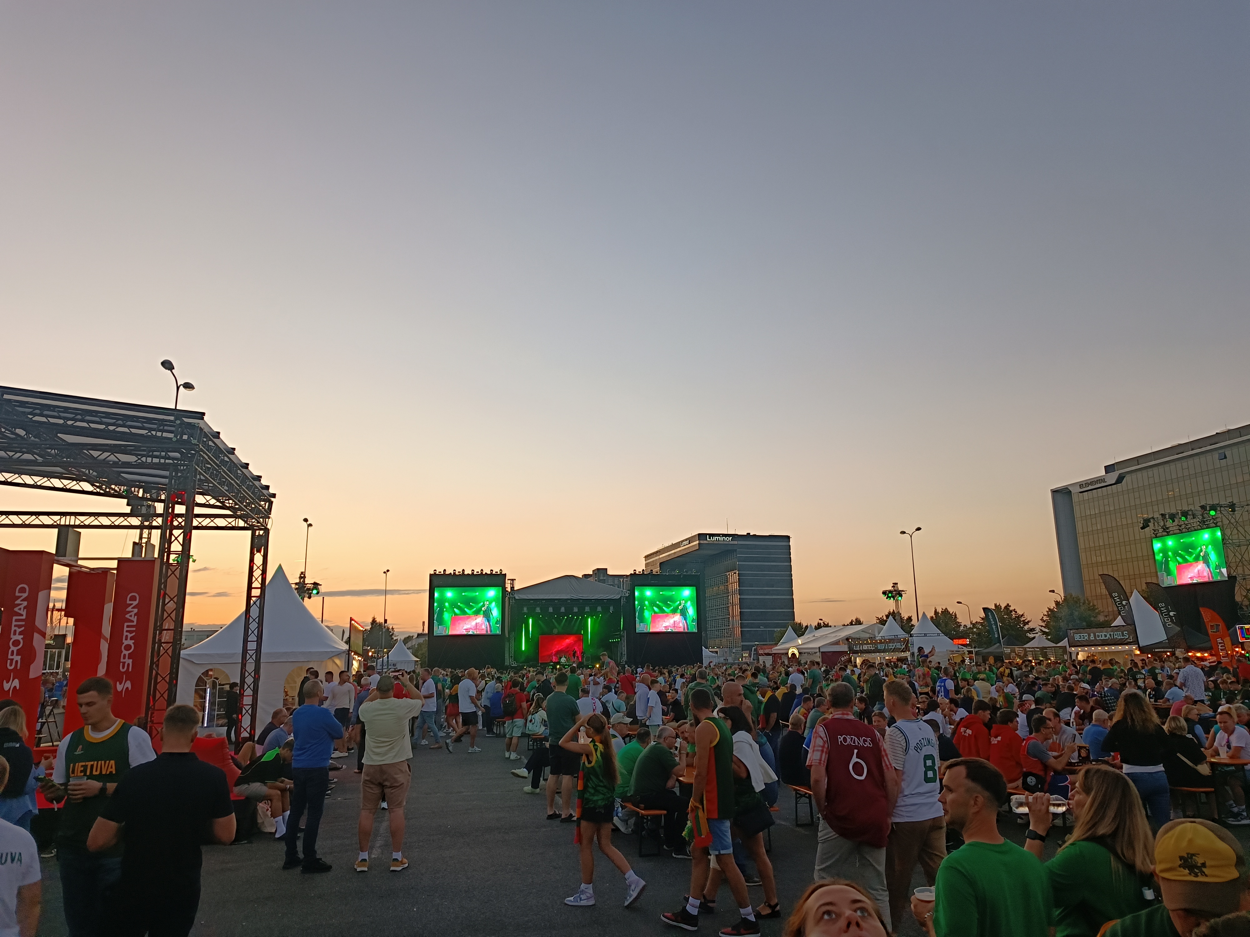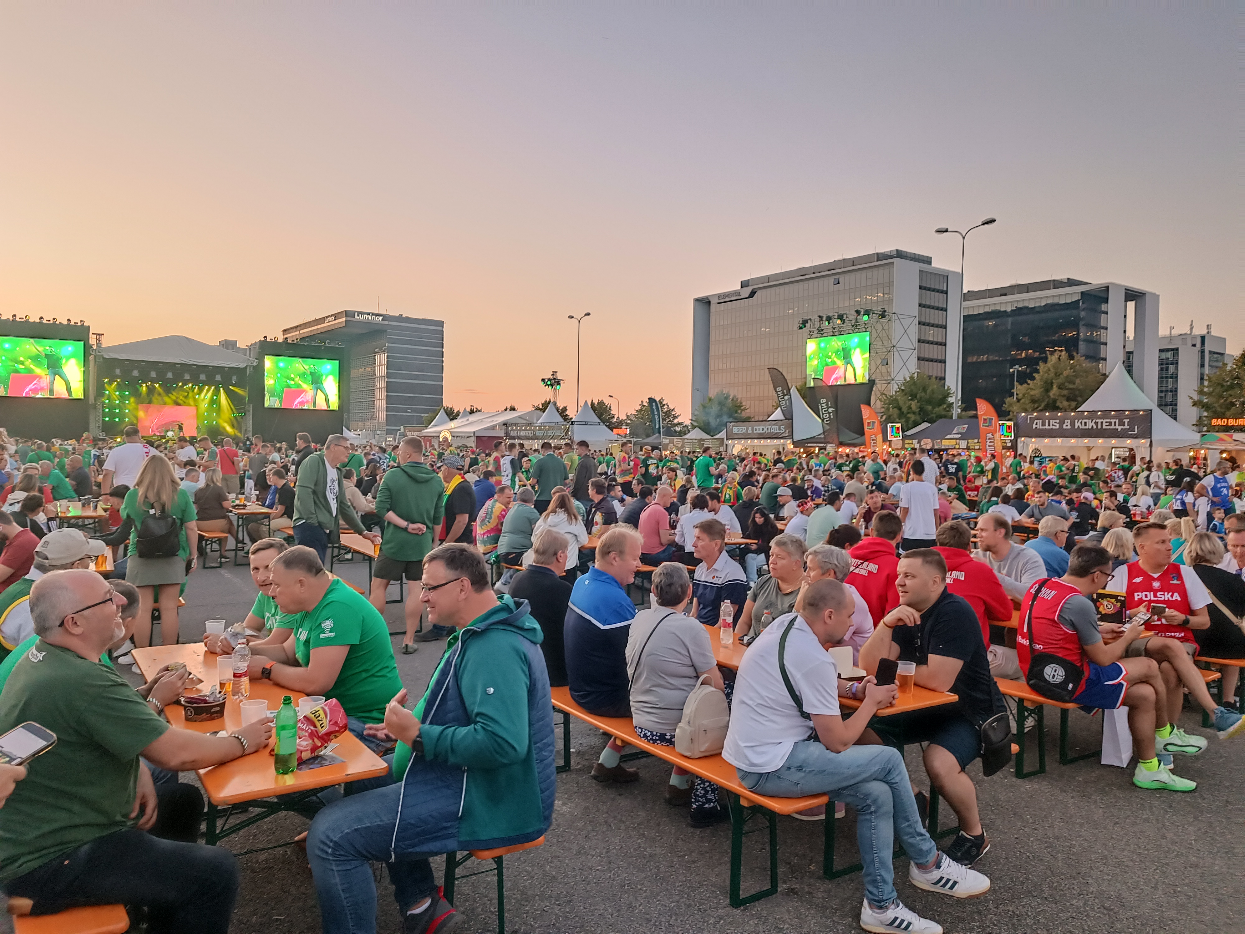 Вот центральная площадь фан-зоны – с длинными лавками и столами, как на Октоберфесте, сценой, большими экранами. Ешь, пей, танцуй, смотри баскет (если нет билета на игру).