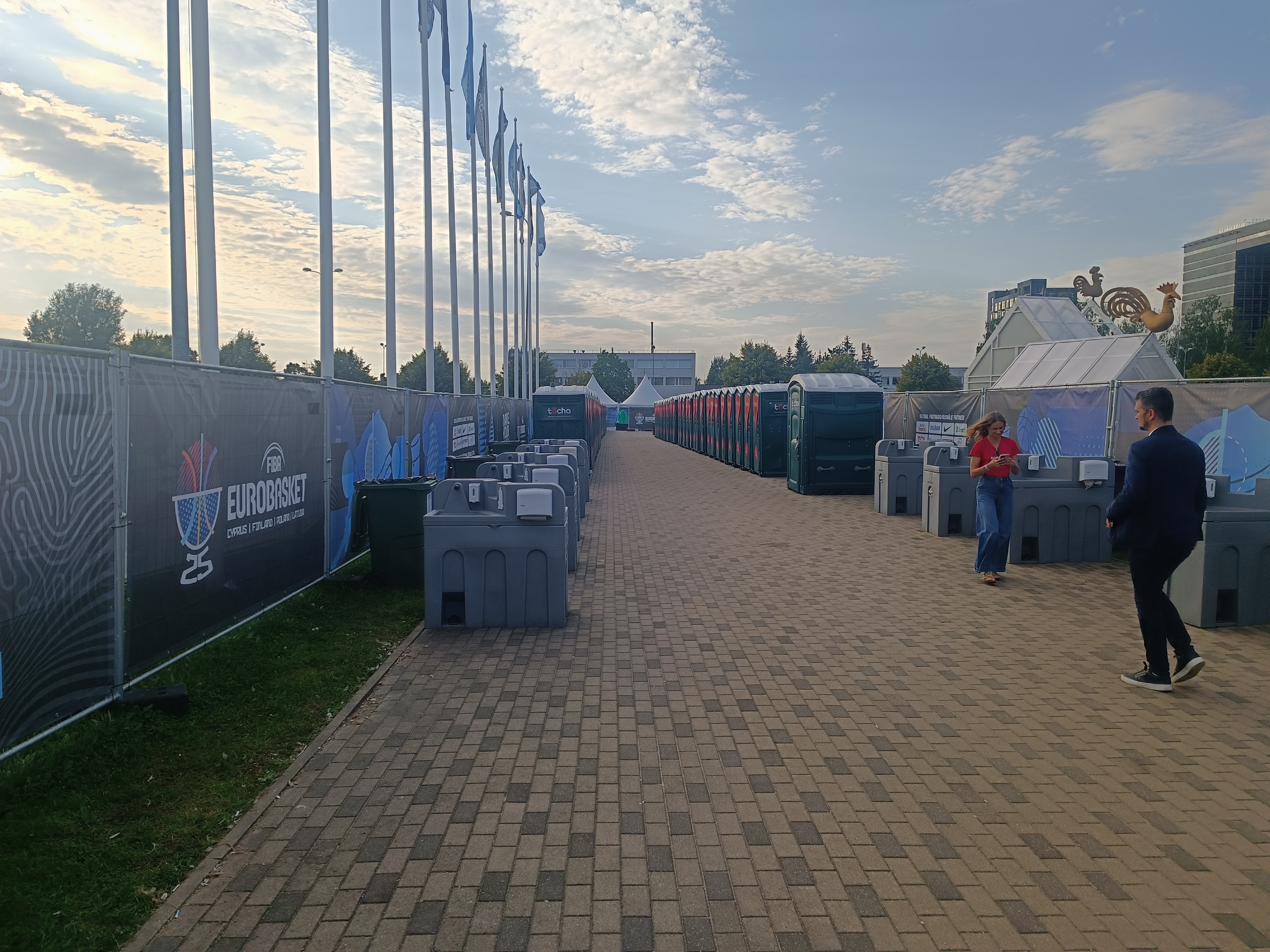 Ну а после выпитого пива, сами понимаете, может возникнуть проблема… В фан-зоне Евробаскета, однако, к этому готовы. Соорудили вот такую аллею с десятками биотуалетов и умывальниками. Все для людей!