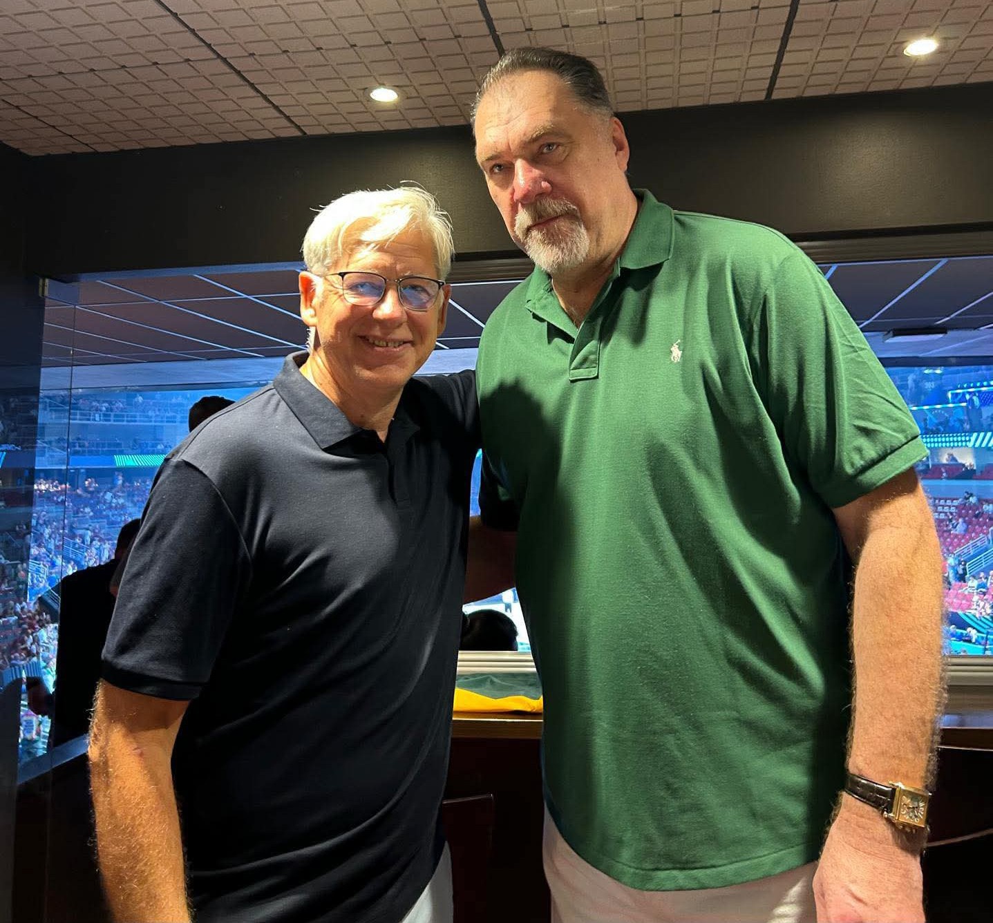 Арвидас и другие почетные гости/официальные лица, что приехали на Евробаскет, тоже счастливы. Они сидят в ложах и в первых рядах, болеют за своих или просто наслаждаются любимой игрой, вспоминают былые сражения, выпивают и закусывают.