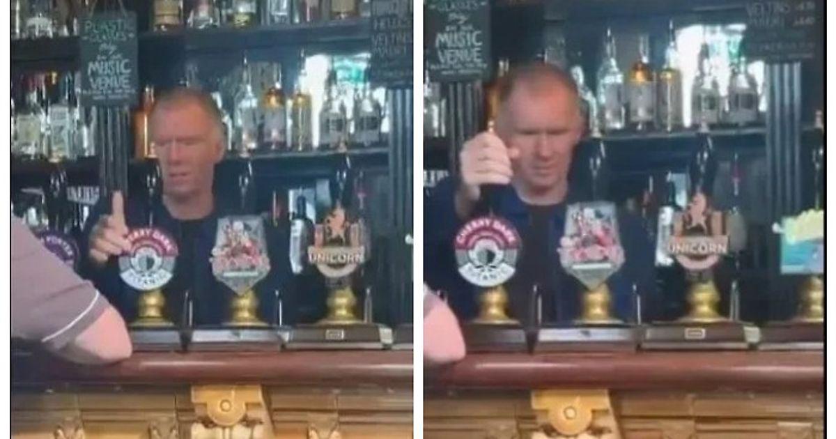 Легенда «Манчестер Юнайтед» Пол Скоулз удивил любителей футбола, наливая пиво в пабе.