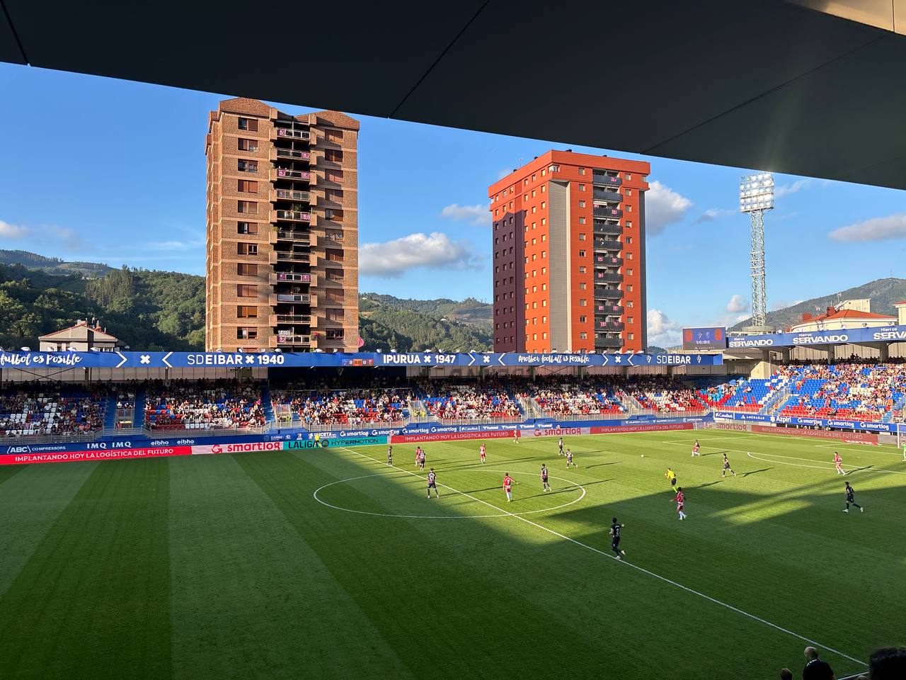 Про сам матч я писать много не буду, хайлайты расскажут о нем лучше меня. «Эйбар», как по заказу, одержал победу 3:0. Капитан Арбилья, который в команде аж с 2018 года, забил гол. Все довольны, погода супер, с трибуны открывается вид на те самые многоэтажки и холмы, а уже во втором тайме – красивейший закат.