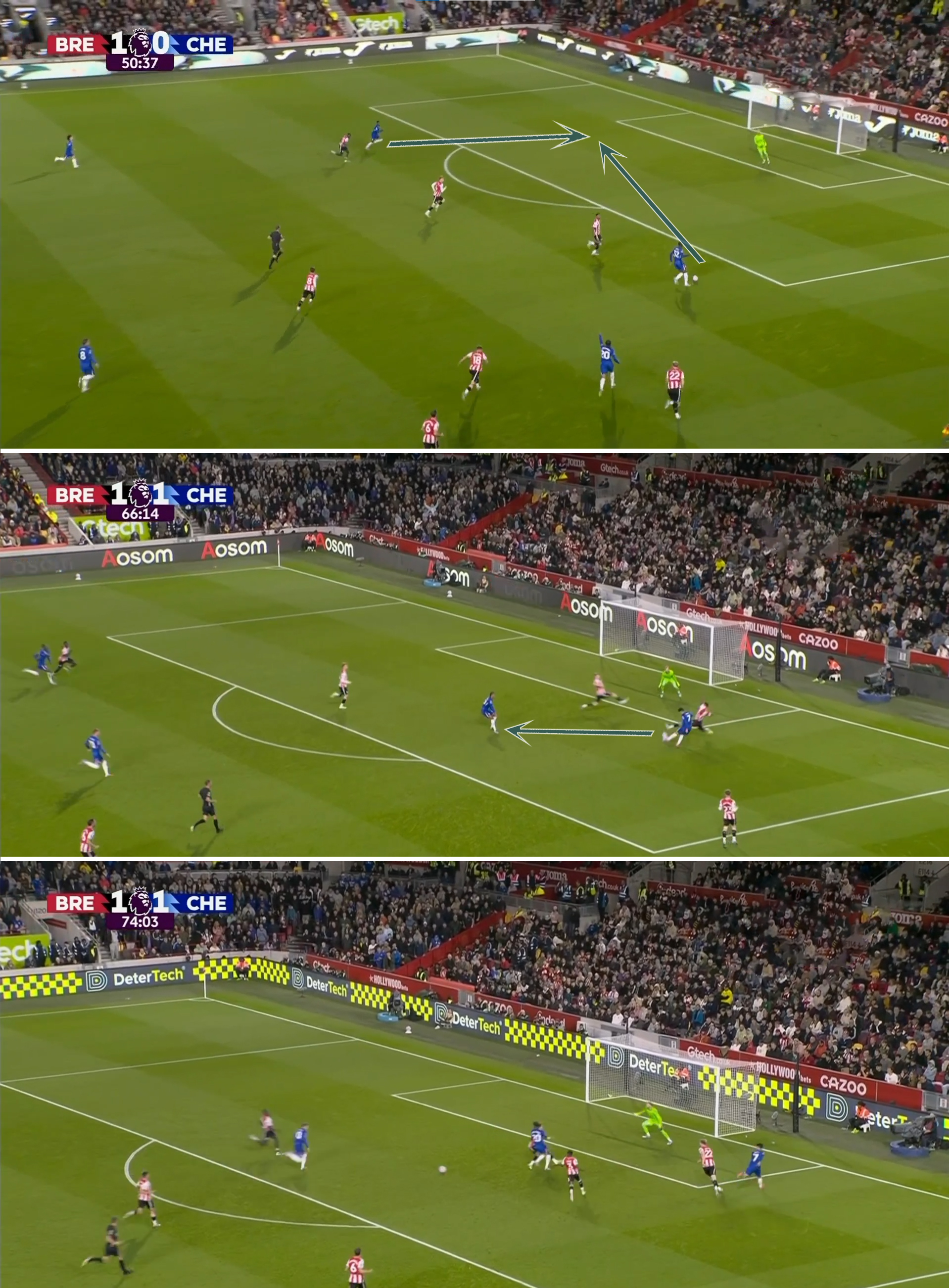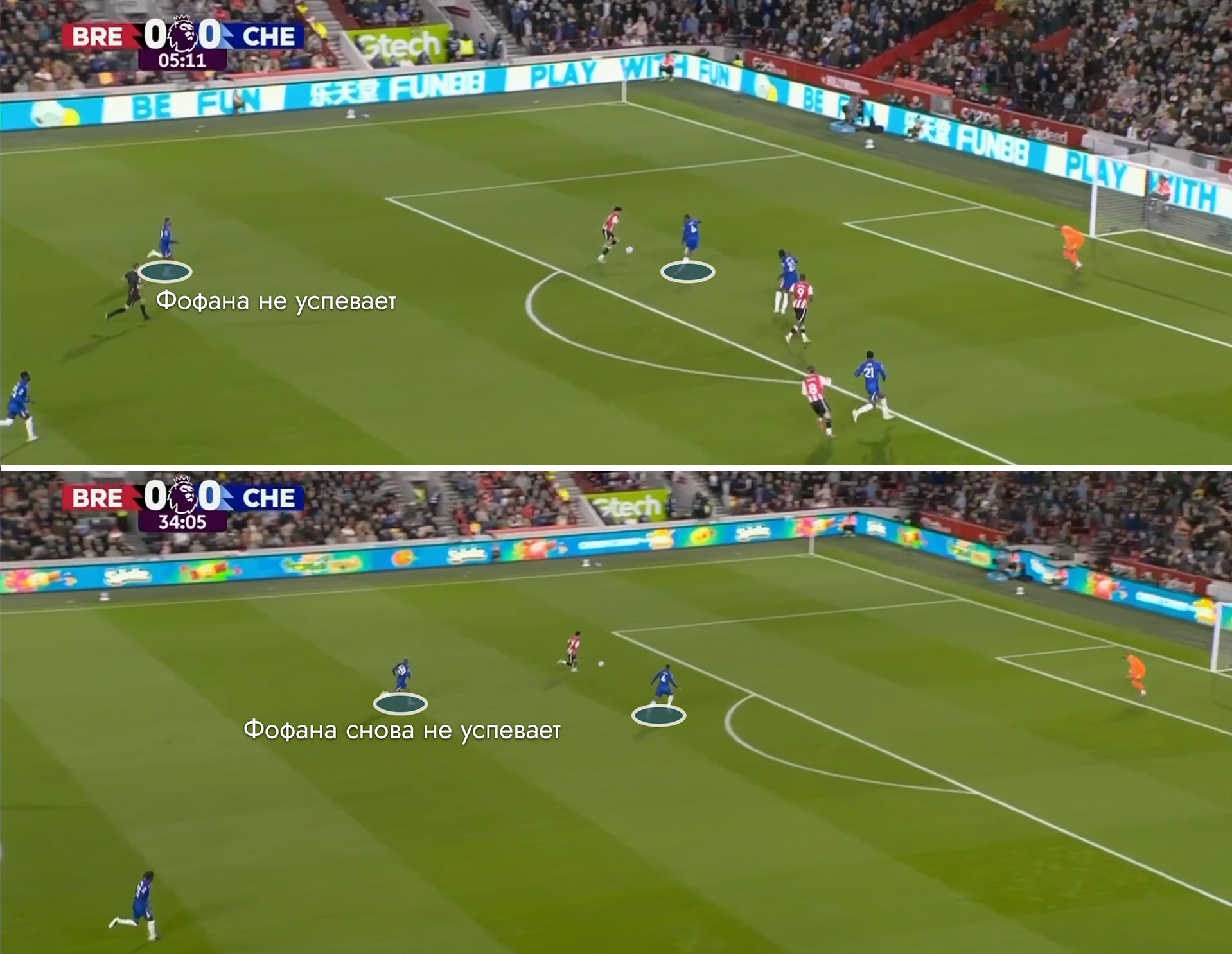 Первый пропущенный гол стал буквально копией отмененного в игре против «Фулхэма». Чалоба выбросился, Кайседо не накрыл передачу Хендерсона, а Тосин остался один в один – в такой ситуации его недостатки особенно заметны. Он попросту очень медленный и тяжелый, а с высокой линией обороны такие контратаки постепенно становятся настоящим кошмаром с ним сзади.