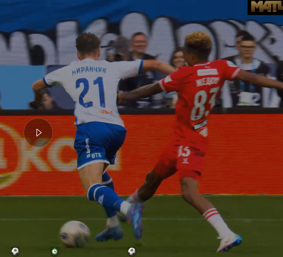 Впрочем, до того, как показать отложенную жёлтую защитнику Спартака, рефери, в продолжившейся атаке Динамо, успел зафиксировать фол Фернандеша на Миранчуке недалеко от штрафной. На мой взгляд, с этого и начали разгораться страсти. Во первых, потому, что никакого фола не было, Миранчук протолкнул мяч, Джедсон поставил ногу рядом, после чего Антон попросту нырнул. Нет, конечно, контакт возможно и был, но ведь футбол же не балет, верно? Ну и во вторых с этого штрафного Динамо сравняло счёт.