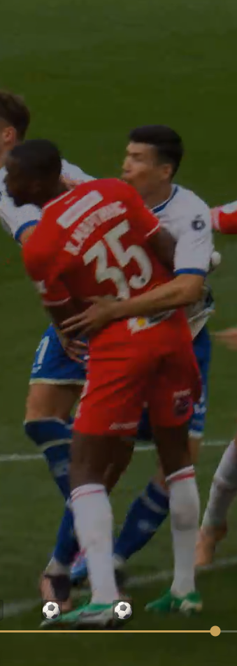 Далее эпизод на 17 минуте. Новобранец Спартака Ву откидывает мяч во фланг, сам забегает в штрафную , где его элегантно принимает на бедро Рубенс. Свисток рефери молчит, согласиться можно, футбол же - не балет, хлипковат контакт для пенальти.