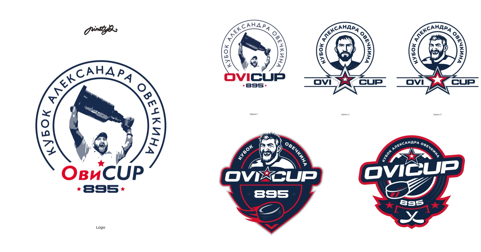 Этот вариант получился самый яркий и необычный за счет персонажа Овечкина. Маскот турнира OviCup — это графический персонаж, который играет важную роль в формировании фирменного стиля и коммуникации с аудиторией. В отличие от фотографий, он не зависит от контекста, легко адаптируется под любые носители и вызывает эмоциональный отклик.