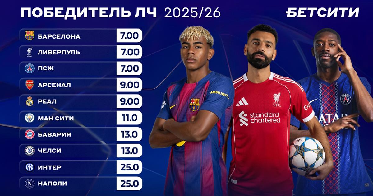 - Шансы сразу трех команд оцениваются одинаково. «ПСЖ» восхитил всех в прошлом сезоне, а «Ливерпуль» потратил рекордные деньги на усиление состава перед стартом нового. «Барселона» похвастаться громкими трансферами не может, но команда Флика и без них демонстрирует яркую игру. На победу любой команды из этой троицы можно поставить с кэфом 7.00.