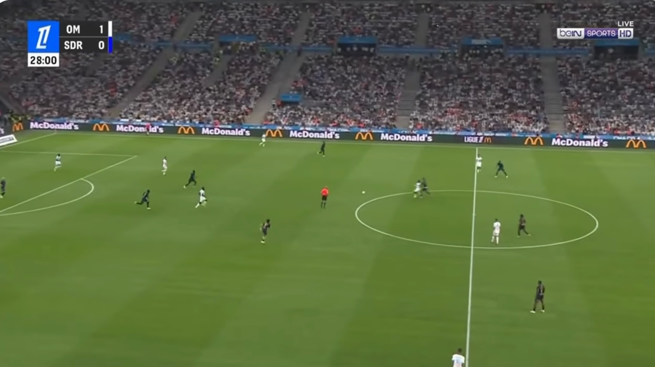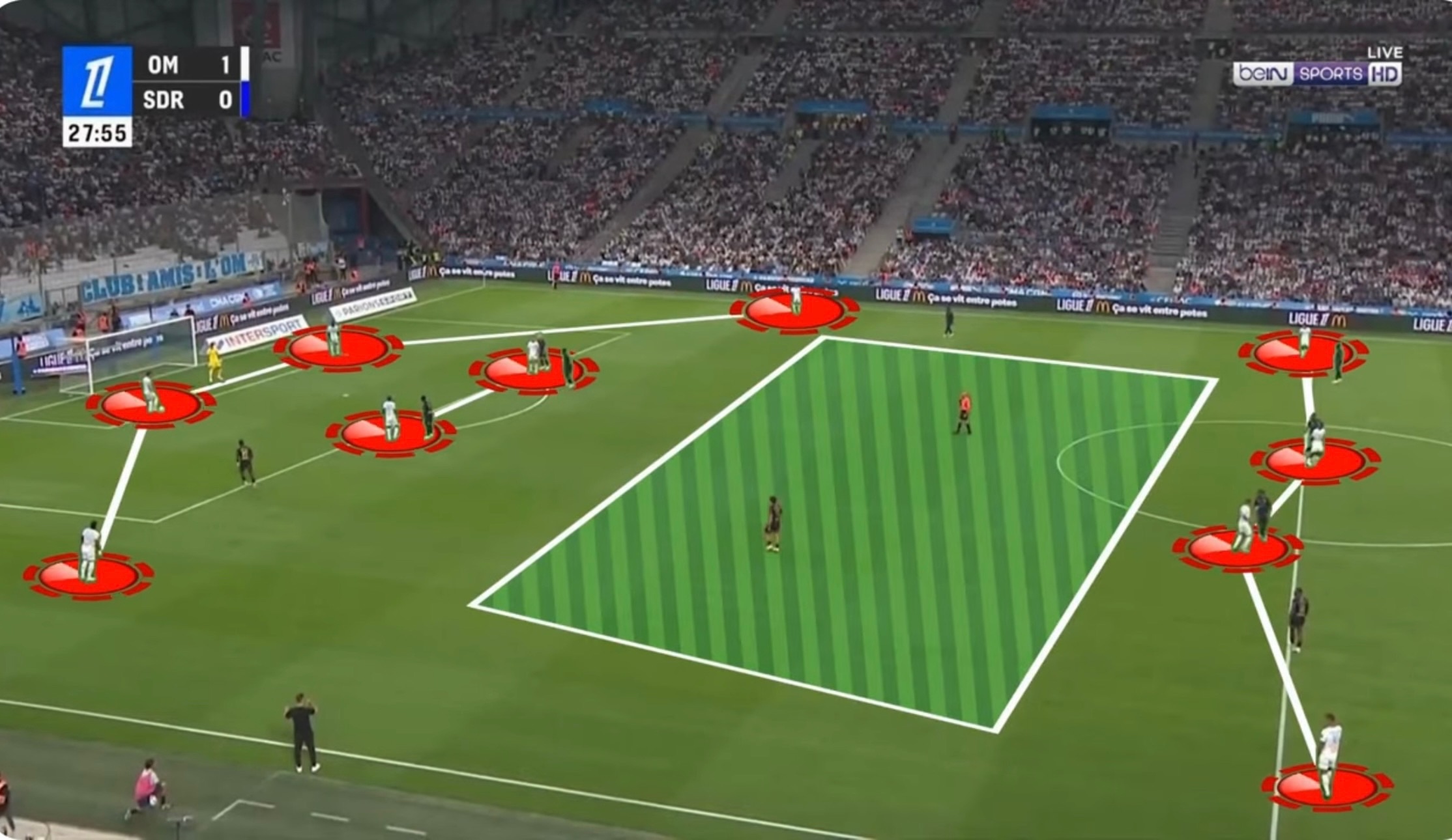 Если защитник не успеет и нападающий сможет развернуться или отдать точную передачу в касание – «Марсель» получает численное равенство или перевес в атаке и в большинстве случаев доводит ситуацию до голевого момента.