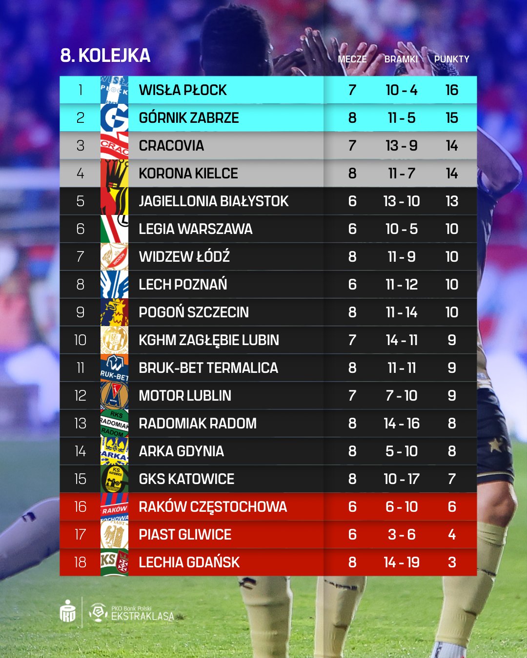 Турнирная таблица Экстракласы