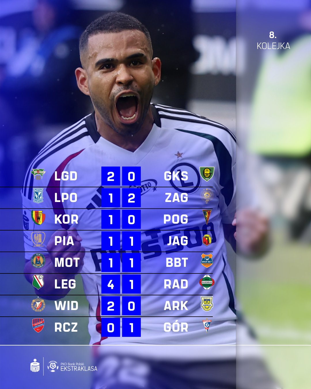 Герой тура: Ксавьер Дзеконьски. 21-летний вратарь «Короны» уверенно лидирует в лиге по числу отраженных ударов (36), ближайший преследователь отразил на восемь меньше. Десять сейвов из тридцати шести Дзеконьски сделал в матче 8-го тура с «Погонью».