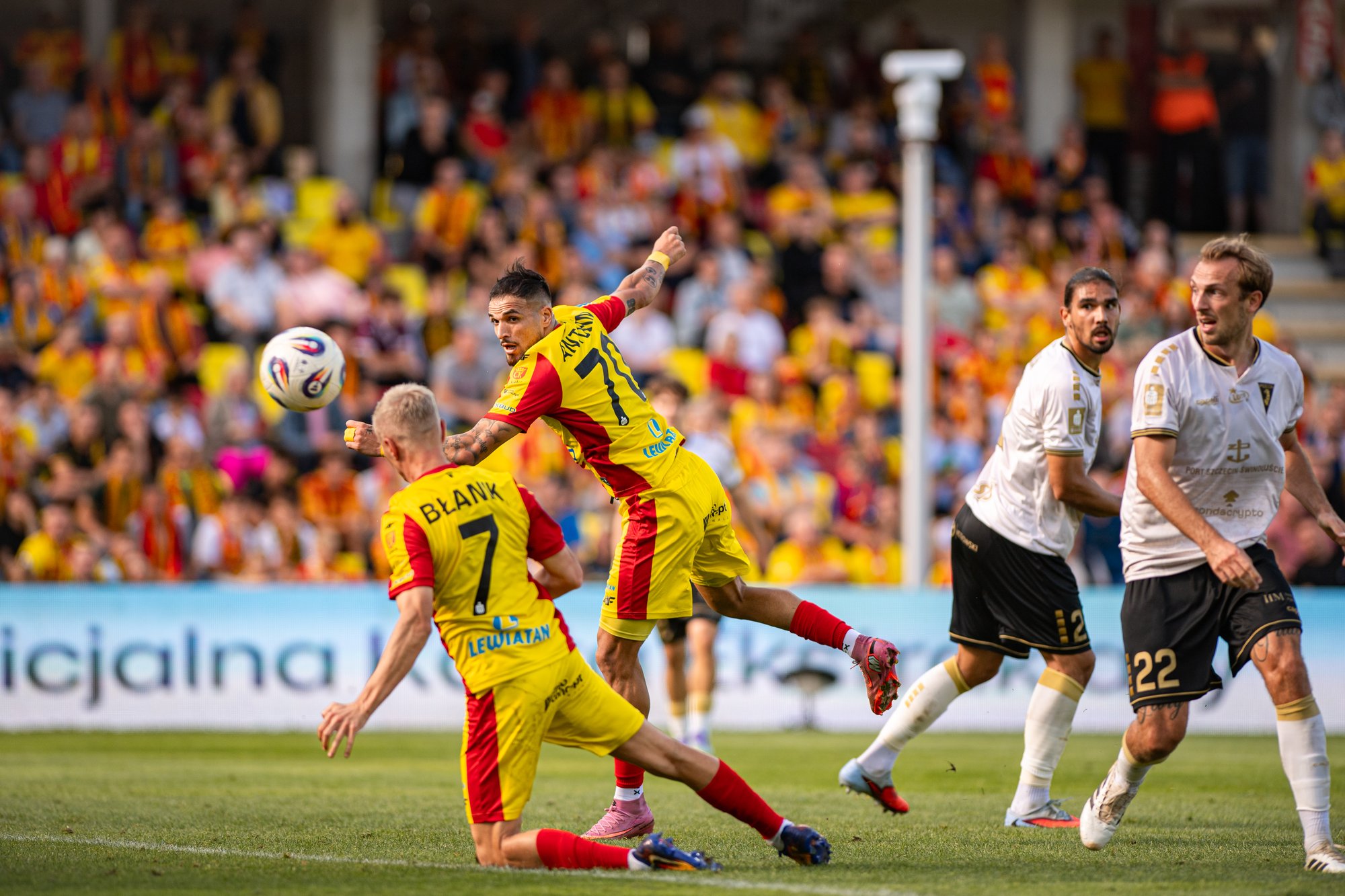 Быстро «Яга» численное преимущество реализовала. Сначала чуть выше перекладины пробил Петушевски, а затем точен был Имаз на 61-ой минуте. Белосточчане еще пытались увеличить преимущество, когда из-за штрафной приложился Лозано, но в конце матча они слишком расслабились, поверив в свою победу. Сначала Далмау пробил мимо из убойной позиции, затем Плах справился с ударом Барковского. Наконец на третьей добавленной минуте Ривас сравнял счет на табло и спас «Пяст» от поражения. Для гливичан это уже четвертая ничья подряд.