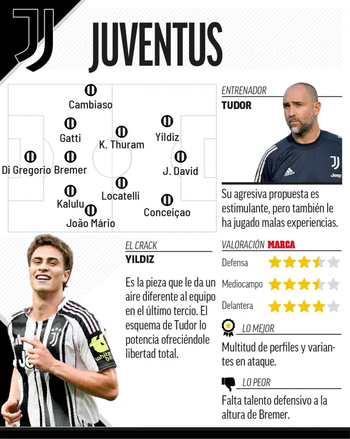 Вылет из плей-офф от «ПСВ» в прошлом сезоне заставил «Ювентус» резко изменить свою позицию в отношении неудачной попытки заполучить Тиаго Мотту. Но в конечном итоге Игор Тудор спас положение, обеспечив квалификацию в Лигу чемпионов. Требования Мотты прошлым летом оставили им мало места для манёвра. Однако они преодолели это, воспользовавшись представившейся возможностью тремя крупными трансферами Джонатана Давида, Жегровы и Опенды, чтобы построить лучшую атаку в Серии А, где им нужно вернуть утраченное уважение. Однако нет лучшего подписания, чем возвращение Бремера после травмы.