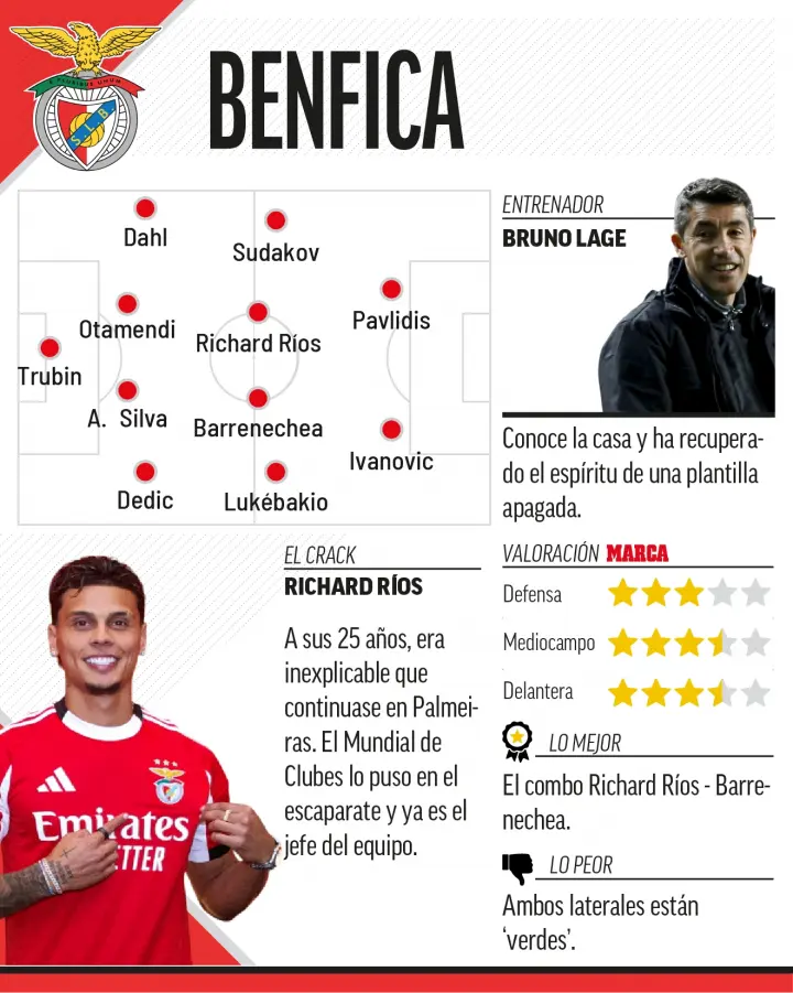 Возвращение Бруно Лаже в прошлом сезоне положило начало закладке фундамента, который вновь озарил «Да Луш». Они боролись за чемпионский титул до последнего тура со «Спортингом», который они обыграли в Суперкубке. «Бенфика» настроена серьезно относительно Лиги Чемпионов, это видно как в отборочных раундах Лиги Чемпионов, они победили двух самых сильных соперников – «Ниццу» и «Фенербахче». Каррерас, Кёкчю, Актюркоглу и Ди Мария – все они ушли. Но начинается новый цикл с другими, которые обещают быть ещё лучше: Дедич, Барренечеа, Ричард Риос, Судаков, Лукебакио, Иванович… Есть много причин ждать от команды сюрпризов.