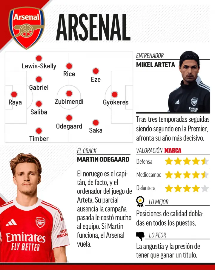 «Арсенал» считается фаворитом во всех турнирах. В этом году нет никаких оправданий, и болельщики «канониров» уже требуют больших титулов, будь то Лига Чемпионов или Премьер-лига. У Микеля Артеты, одного из лучших молодых тренеров планеты, есть всё для этого: команда имеет по два игрока на каждую позицию после инвестиций в почти 300 миллионов евро. Да, «Арсенал» проиграл «Ливерпулю» в начале чемпионата, но нет сомнений, что «Арсенал» будет бороться за трофеи и если он в этом сезоне останется без трофея, это станет разочарованием.