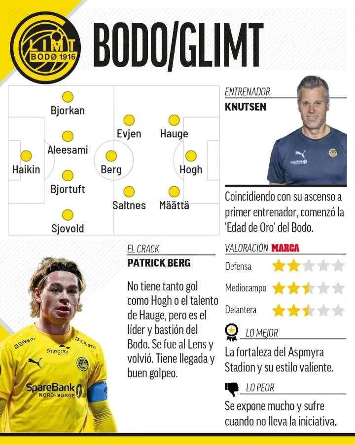 В 2017 году они вернулись в Первый дивизион и с тех пор выиграли четыре чемпионских титула, дошли до четвертьфинала Лиги Конференций и полуфинала Лиги Европы. Теперь, обыграв «Штурм» из Граца в отборочном раунде, они дебютируют в Лиге Чемпионов в качестве самой северной команды в истории турнира. Подопечные Кьетиля Кнутсена превратили стадион «Аспмира», расположенный в самом сердце Полярного круга, в настоящую крепость. Они обыграли «Рому» (2:1 и 6:1), «Порту» (3:2), «Лацио» (3:1) и так далее. Особенно дома они играют как сумасшедшие, без страха. «Для нас важно играть в атакующий и зрелищный футбол», — считает Кнутсен.