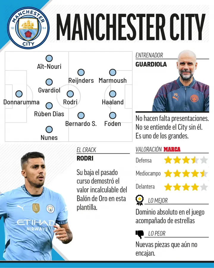 Сейчас или никогда манкунианцы должны переродиться. Они переживают худший период в эпоху Гвардиолы. Они не выиграли ни одного титула, даже не участвовали в борьбе за чемпионство в Премьер-лиге и без особого шума выступили в прошлом сезоне в Лиге чемпионов. Но новый сезон уже в самом разгаре, благодаря «Плану обновления» 8-х чемпионов Англии. «Манчестер Сити» покинули игроки, некоторые из которых – настоящие легенды команды, такие как Де Брёйне, Гюндоган и Эдерсон. Даже Чики Бегиристайн попрощался с клубом, уступив место Уго Виане. Победитель Лиги чемпионов двухлетней давности хочет снова доминировать в Европе.