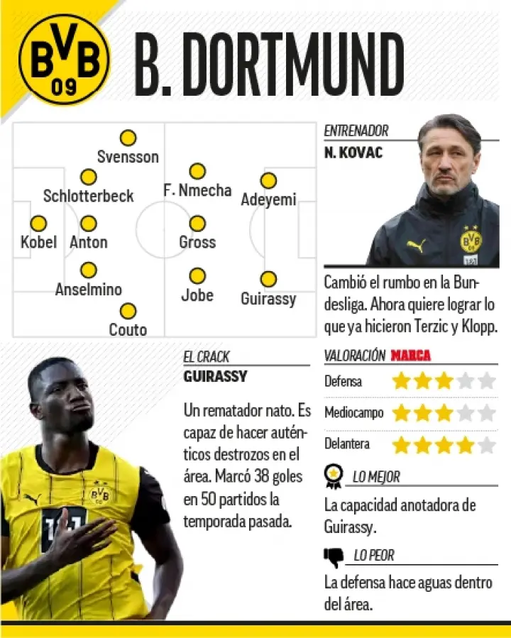 Молодость и опыт этой команды делают её крепким орешком. В команде много качественных атакующих игроков, но в то же время оборона обрекает её на провал. Травмы в этой части поля мешают Нико Ковачу. «Потери в обороне вынудили нас пойти на рынок», и именно поэтому был подписан Ансельмино, который стремится стать стеной, защищающей ворота Кобеля. В полузащите полно блестящих, но неопытных игроков, таких как Джоб Беллингем и другие.