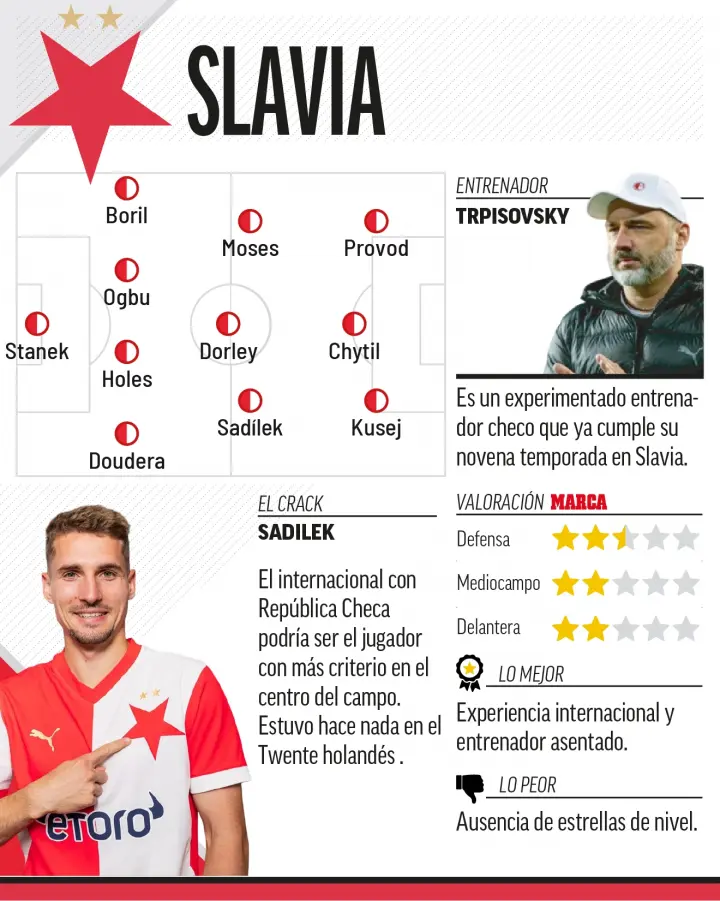 Чемпионы Чехии – команда с богатым опытом выступлений в Европе, и в этом году они вернули себе титул чемпиона страны. На чешском уровне у них сильный состав за команду играют: Станек, Холеш, Доудера, Садилек, Кусей, Провод и нападающий Хори. Конечно, их уровень по сравнению с командами среднего уровня в этой Лиге Чемпионов значительно ниже, но любое очко, заработанное ими дома, станет победой для пражской команды.