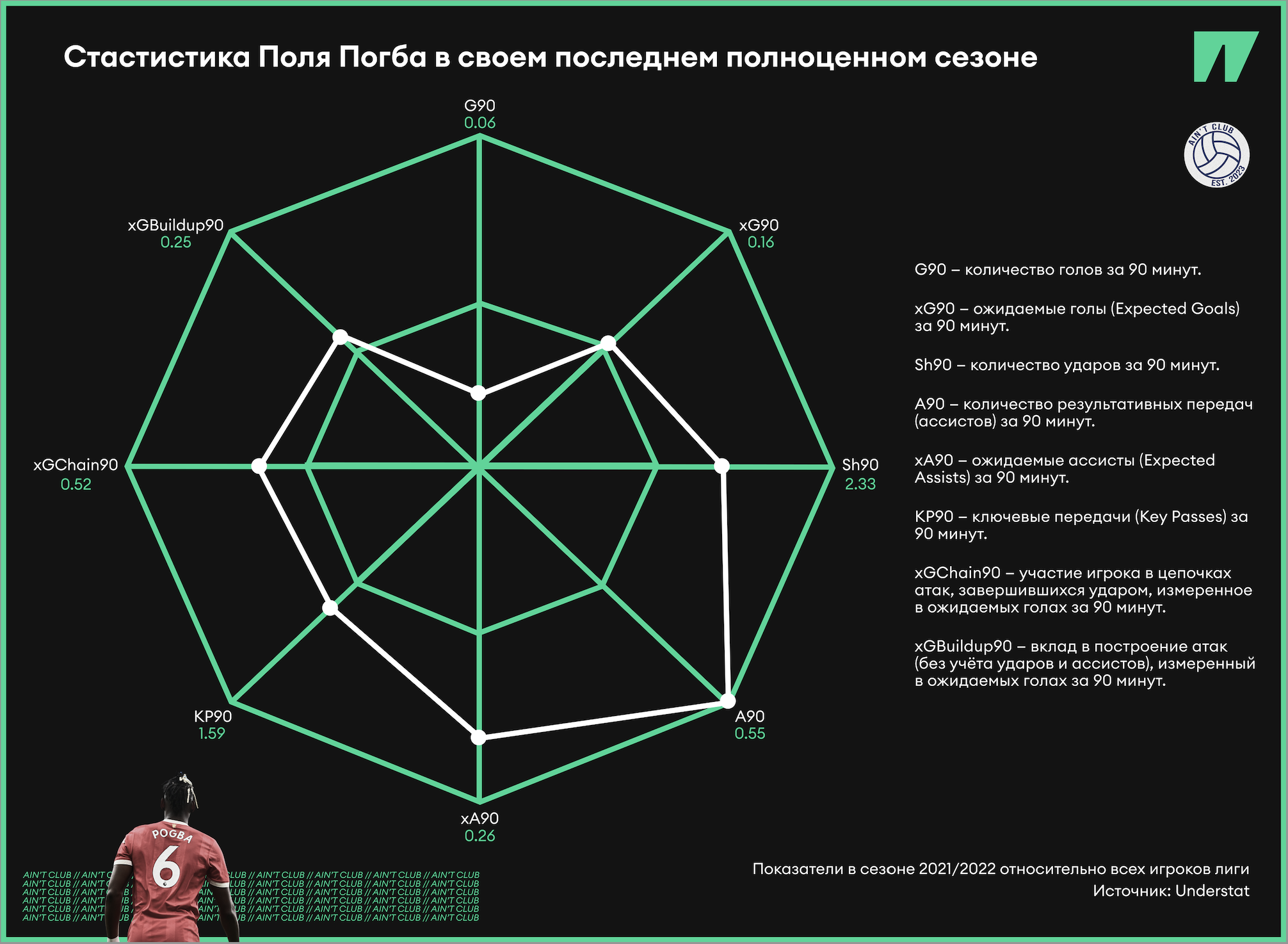 Сезон 2021/22 стал для Погба прощальным в Англии и символом всей его противоречивой эпохи в «Юнайтед». Он начинался так, будто Полю наконец-то суждено было оправдать возложенные на него ожидания. Уже в первом матче чемпионата против «Лидса» француз отдал четыре результативные передачи – рекордное достижение для игрока клуба в одном туре АПЛ. Его партнерство с Бруну Фернандешем выглядело как нечто, что может оживить атакующую мощь команды, а болельщики заговорили о том, что это и есть настоящий Погба: доминирующий, креативный, вдохновляющий.