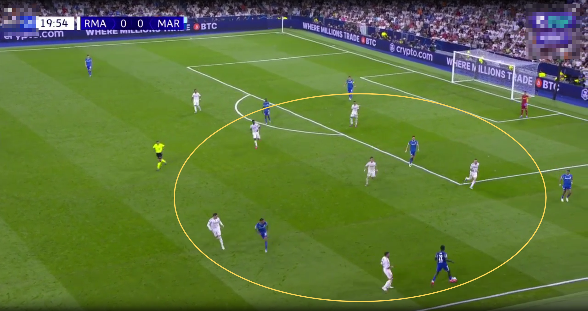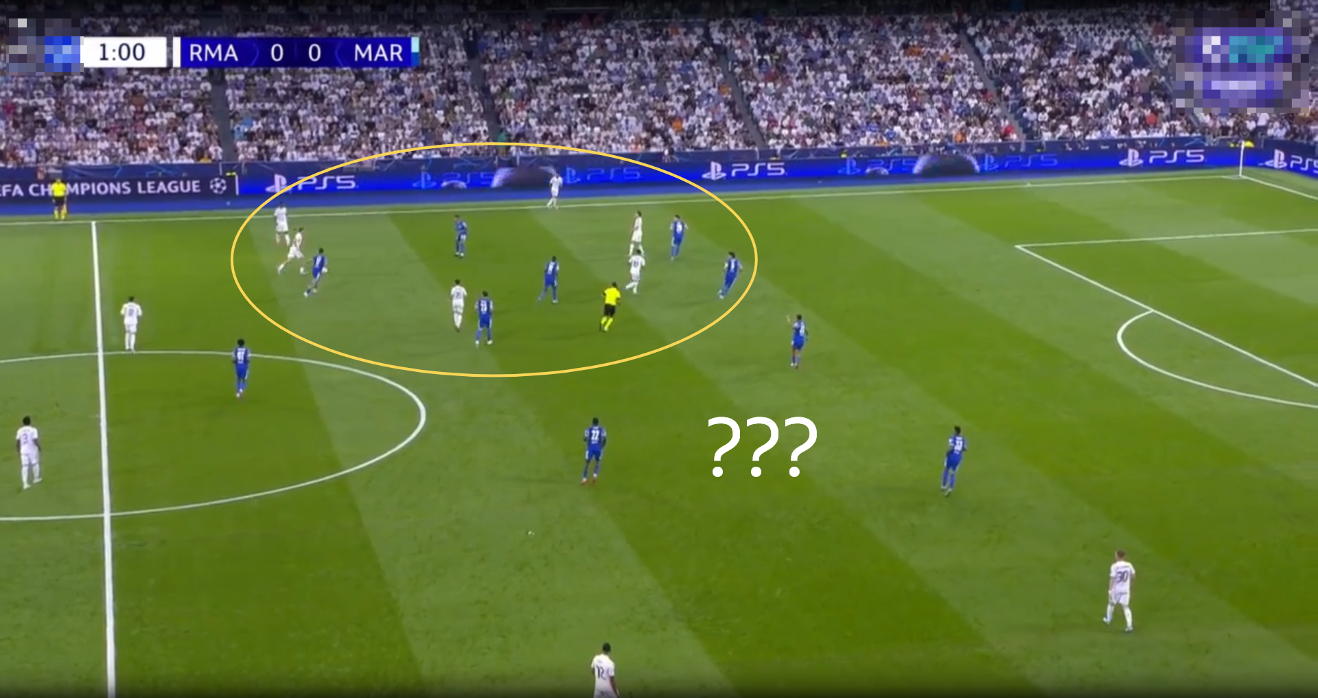 В это время совершенно пустой оставалась центральная зона перед штрафной. В плане грамотного заполнения зон к «Мадриду» здесь большие вопросы.