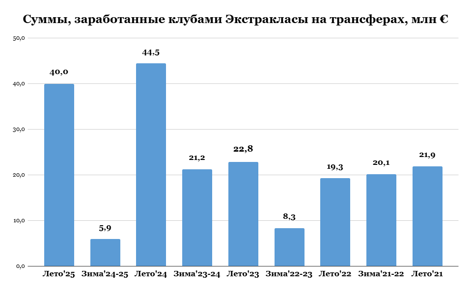 При этом это не вызвано рекордными продажами. На продажах футболистов клубы Экстракласы заработали за лето сорок миллионов, это на четыре с половиной миллиона меньше, чем клубы заработали прошлым летом, при этом год назад на приобретения восемнадцать клубов Экстракласы потратили всего 11,4 миллиона евро.