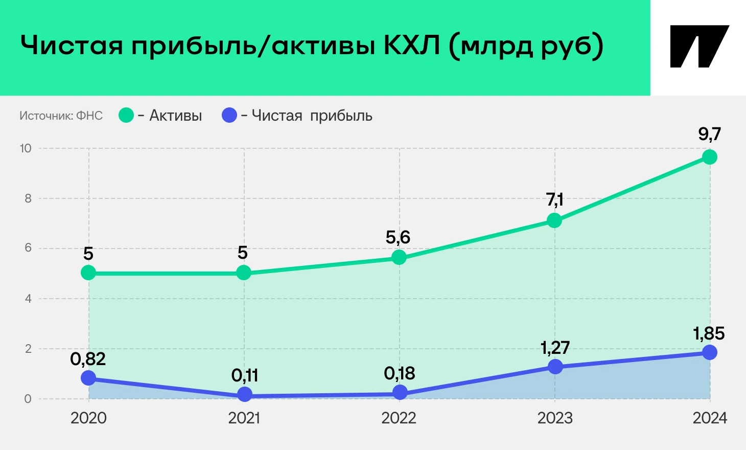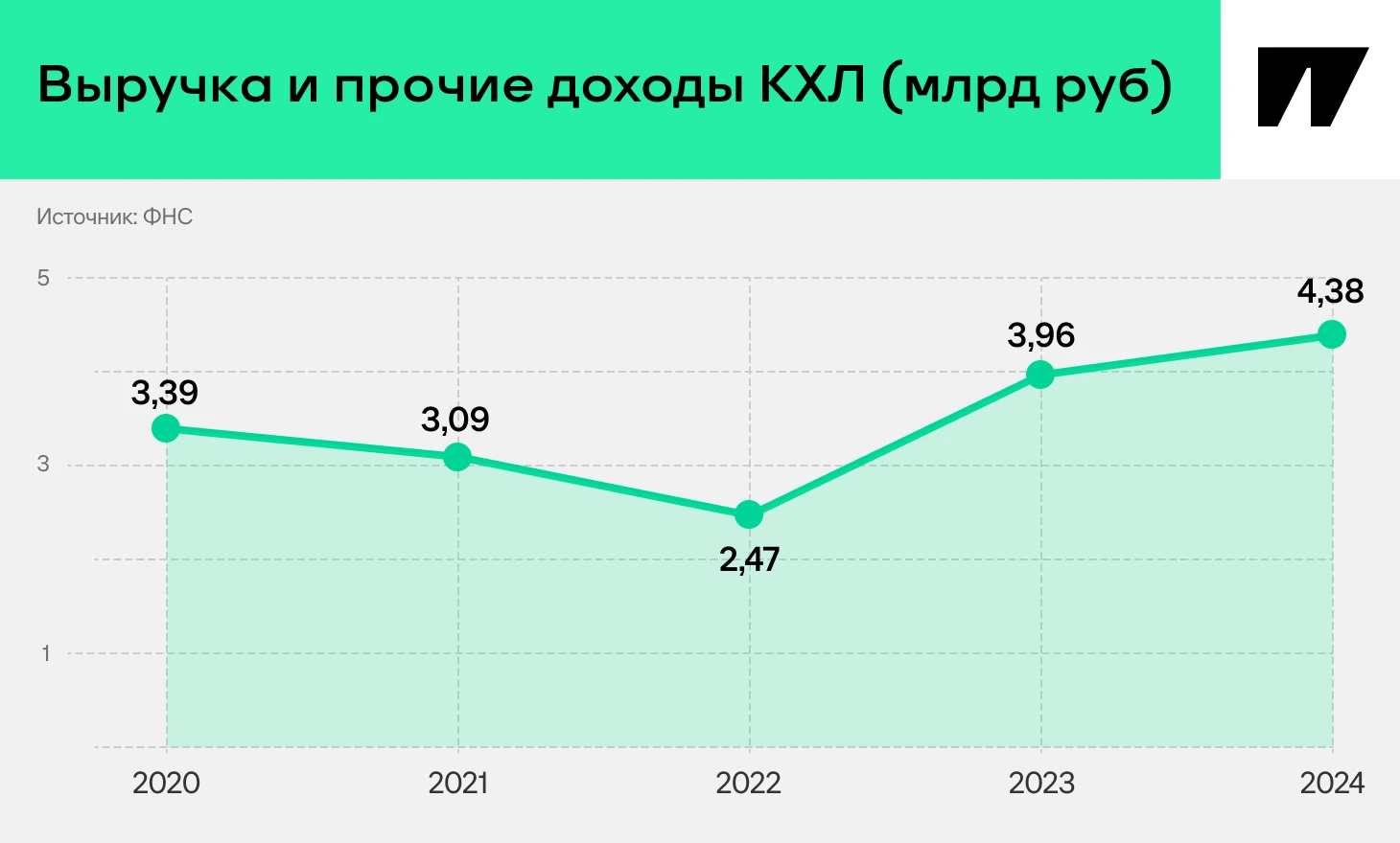 В 2024 году выручка КХЛ составила 4,38 млрд рублей, а чистая прибыль КХЛ выросла до исторических почти 2 млрд.