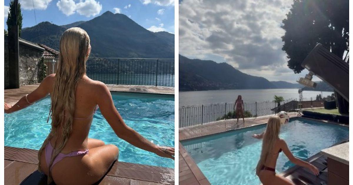 Алиша Леманн продемонстрировала свои футбольные навыки, греясь на солнце на озере Комо.