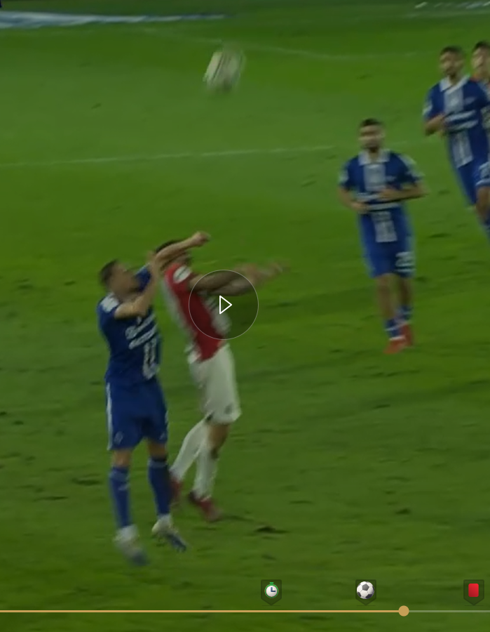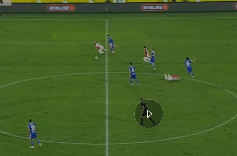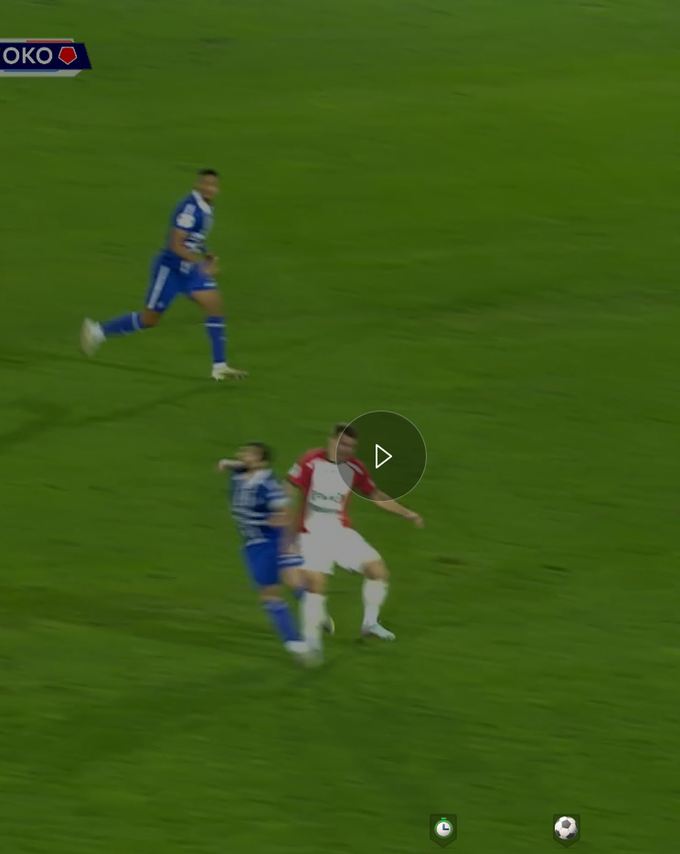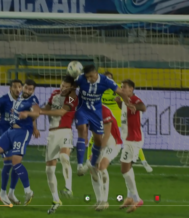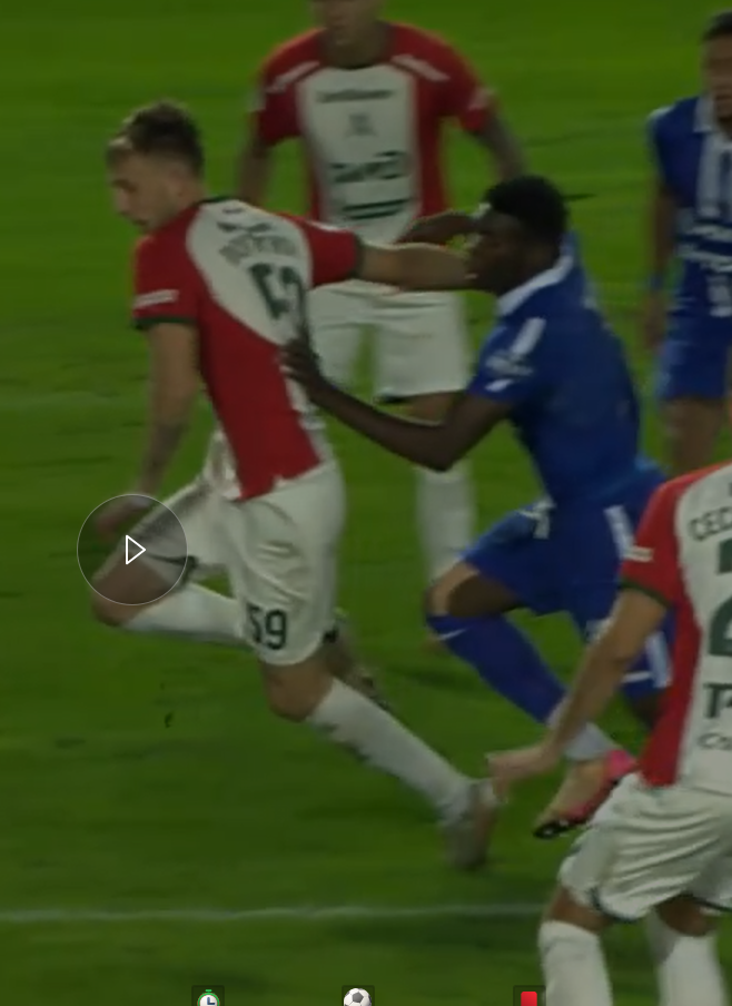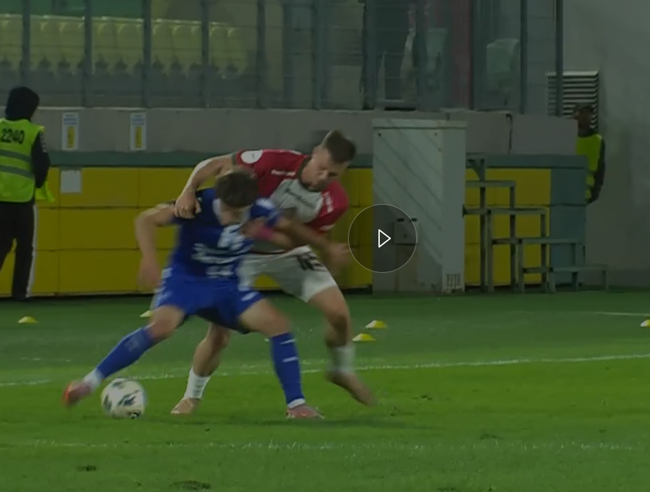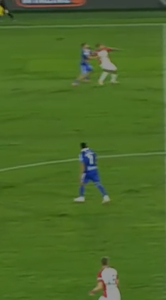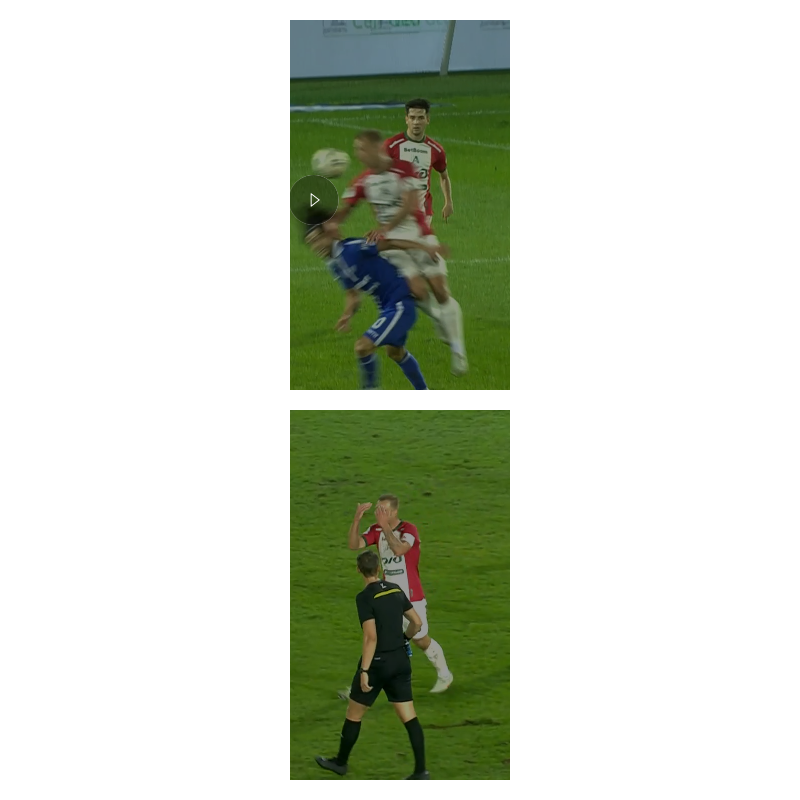 100 минута. Защитник сзади. Комличенко изображает. Может и подтолкнул, но Казарцев не верит. Минусы частых симуляций.