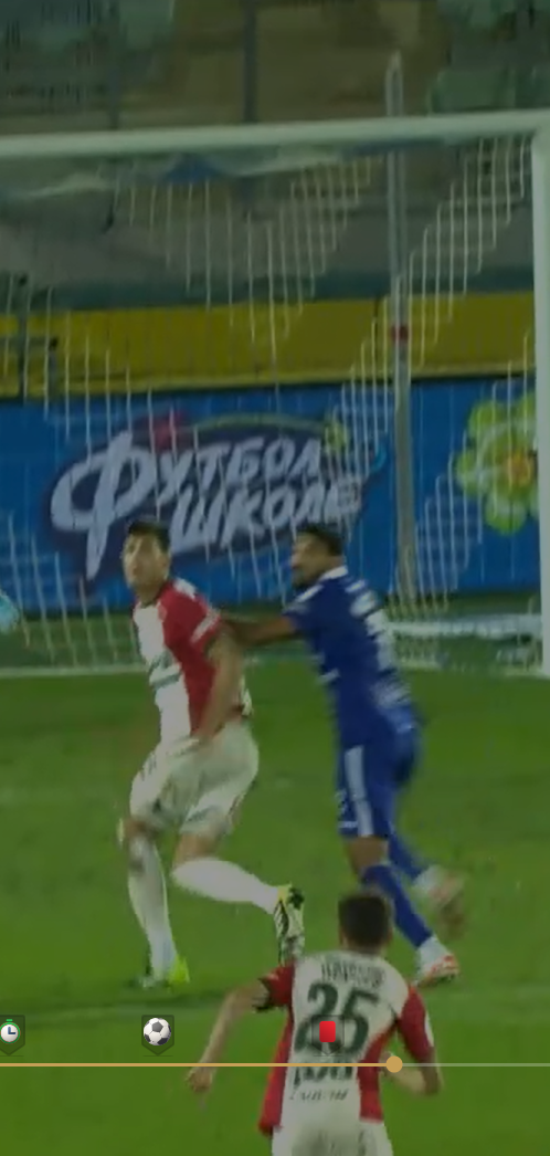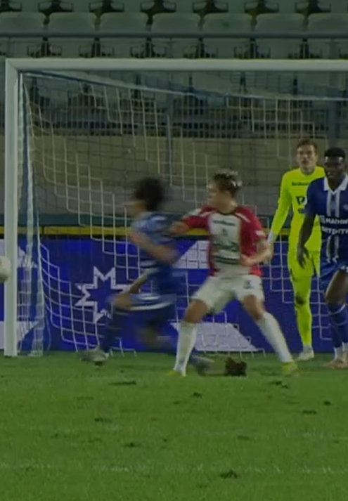 5 минута .Пропускает Казарцев случайный наступ на Воробьёва. О карточке речи конечно нет, мяч в воздухе, оба смотрят на него, но фол , мне кажется, надо было фиксировать.
