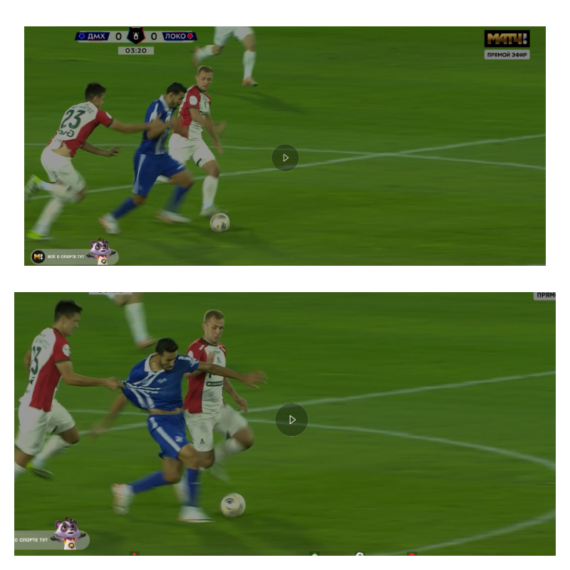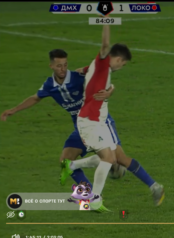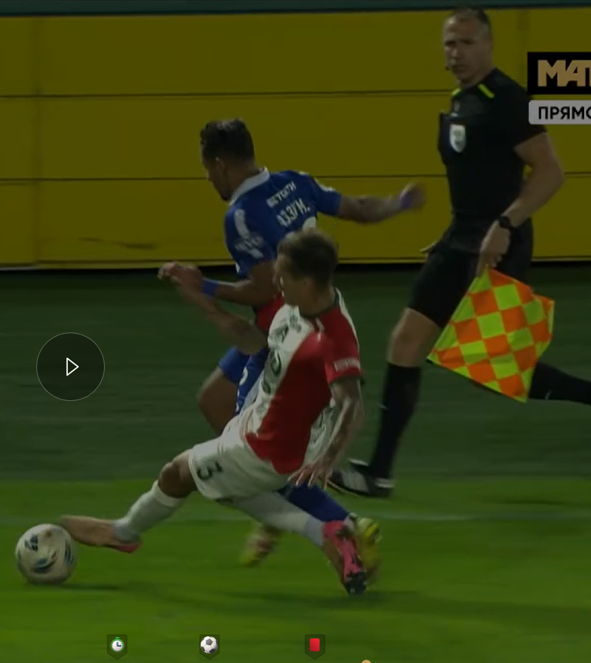 9 минута .Локо пытается быстрее ввести мяч в игру, махачкалинец откидывает мяч. За это уже можно точно показывать жёлтую .