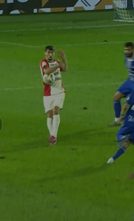 42 минута .Навес со штрафного.Матч попадает в руку динамовца. Фиксирует Казарцев фол в атаке.