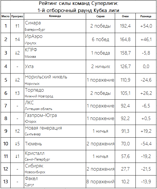 Первая неделя Кубка лиги: «Синара» снова лидер в Рейтинге силы