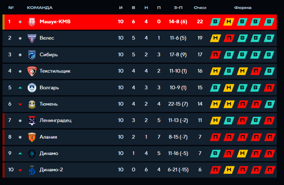 Восемь туров остается до конца осенней части сезона. «Машук» единолично возглавил таблицу и продолжает уверенно идти по турниру, добывая очки. На место в тройке смело могут претендовать команды со второго, по шестое место. «Ленинградец» в шаге от места в топ-6. 10 тур укрепил позиции шестерки сильнейших, но расслабляться и доигрывать сезон пока рано. Лишь «Алания», и оба «Динамо» могут начинать готовиться к весеннему отрезку, в спокойном режиме. Хотя и у этих команд, еще есть время поправить свои турнирные дела. Вдруг победа Кирова, окажется переломной и команду прорвет. Об этом и многом другом в оставшейся части сезона, читайте эксклюзивно на спортс.ру