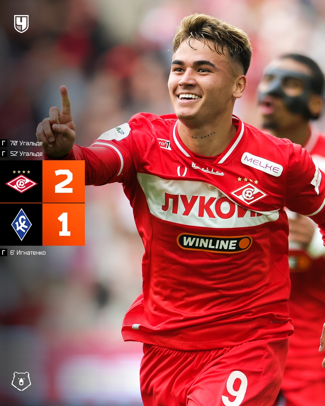Именно Ильзат убежал в контратаку, пролетев мимо Умярова, а Олейников здорово подал из-под Джику на Игнатенко. Тот опередил Денисова, здорово кивнул головой, и вот 0:1 уже к шестой минуте! Эта же связка ранее кошмарила «Сочи». Теперь досталось и красно-белым.