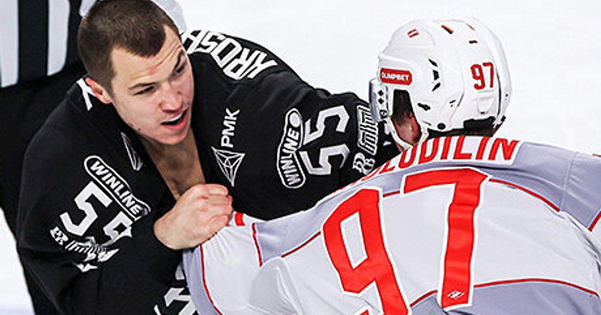 Его бой с Холодилиным затянулся на пару минут. Игроки сняли перчатки, обменялись несколькими ударами и стянули друг с друга шлемы. Напряжение было серьезным – один из них даже порвал сопернику цепочку. Но явного победителя так и не определили: судьи вмешались раньше, чем кто-то оказался на льду.