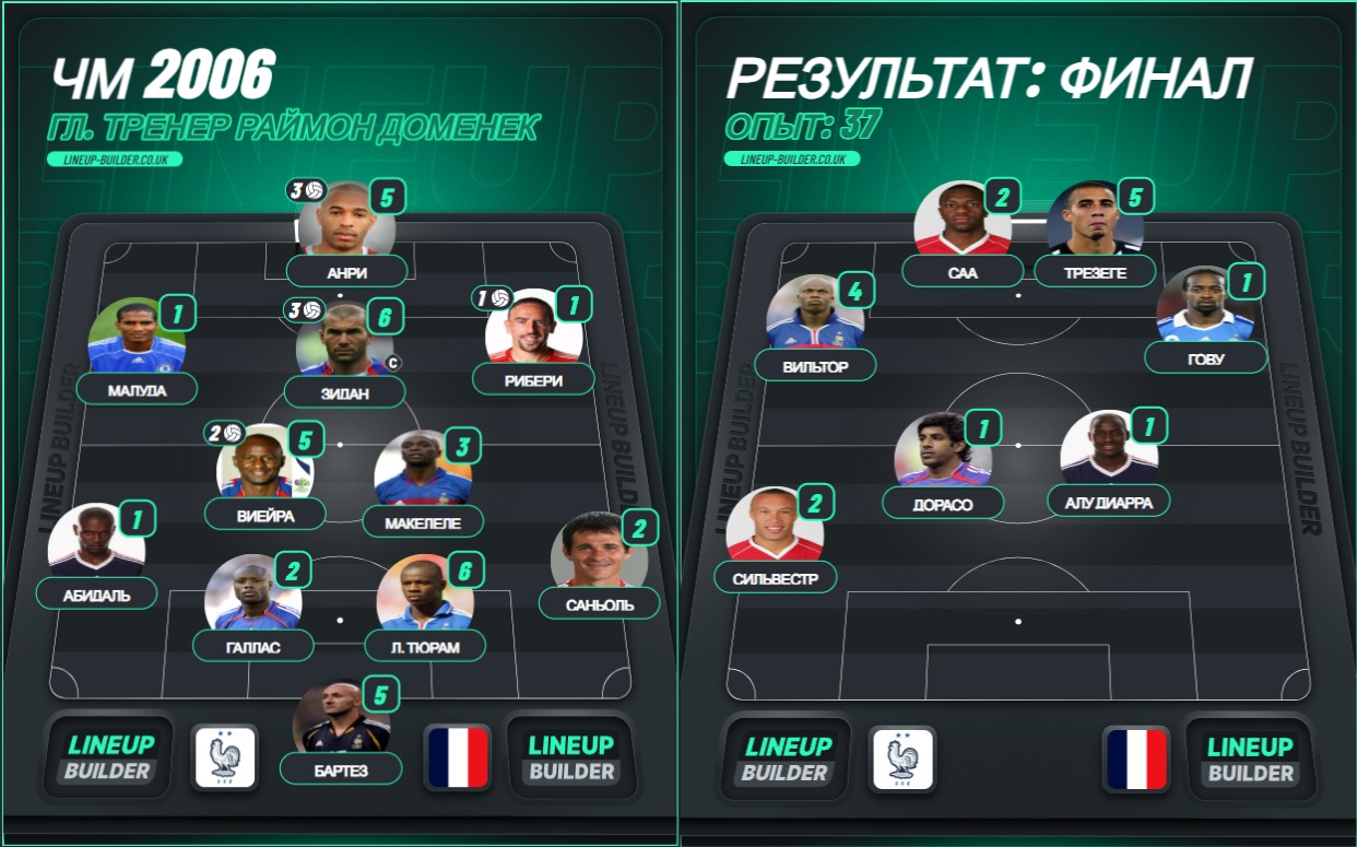 Рассмотрим генеалогию опыта сборной Франции в XXI веке.