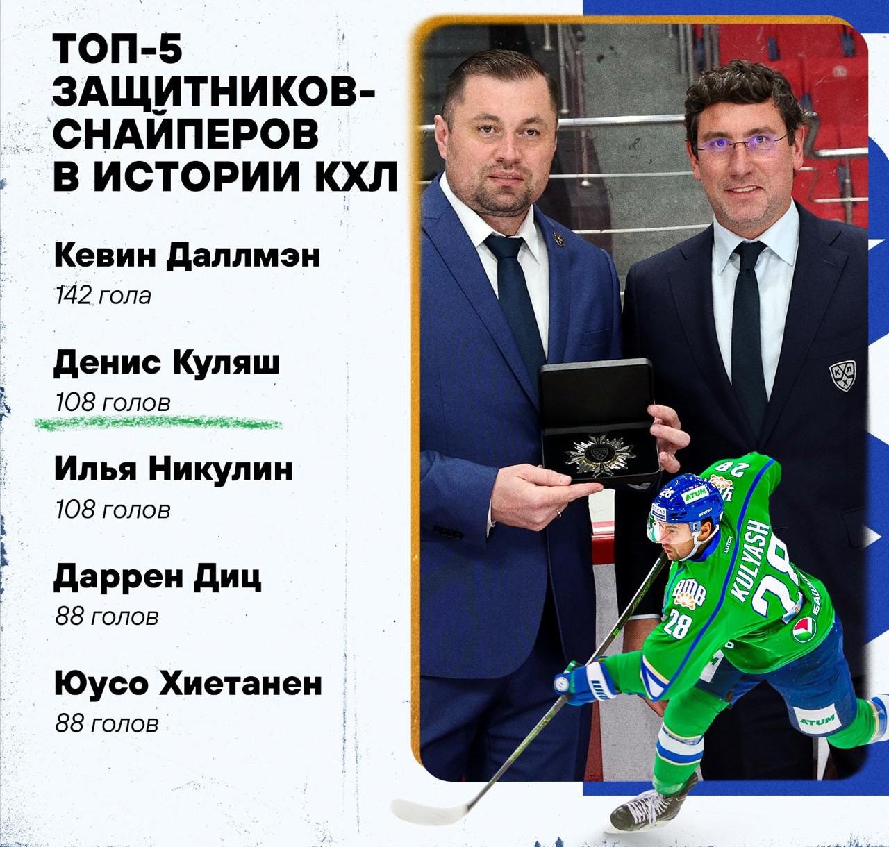 За историю Континентальной хоккейной лиги больше «Царь-пушки» (так прозвали Куляша болельщики и комментаторы) забросил только один защитник — Кевин Даллмэн. В Клуб рекордсменов входят игроки обороны, забившие больше сотни голов в КХЛ.