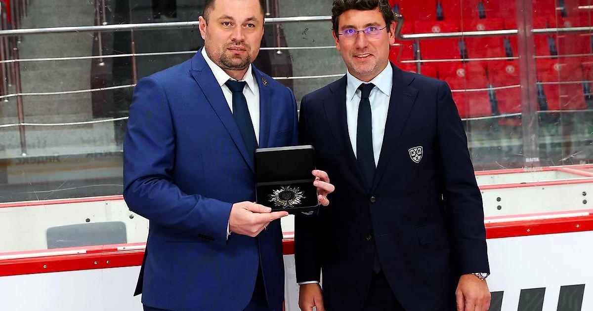 В среду, 17 сентября, в Молодежной хоккейной лиге прошло девять матчей, два из которых получились особенно запоминающимися. Перед началом игры «Капитан» — «Локо» вице-президент КХЛ по развитию молодежного хоккея Александр Гуськов вручил главному тренеру хозяев Денису Владиславовичу Куляшу награду «Клуба рекордсменов КХЛ».