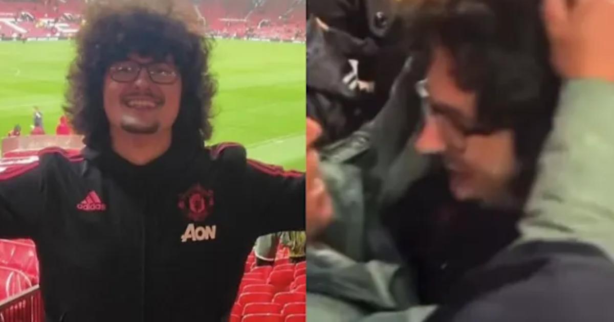 Тот самый фанат «Манчестер Юнайтед», который пообещал не стричься, пока команда не выиграет пять матчей подряд, огреб в толпе от другого фаната.
