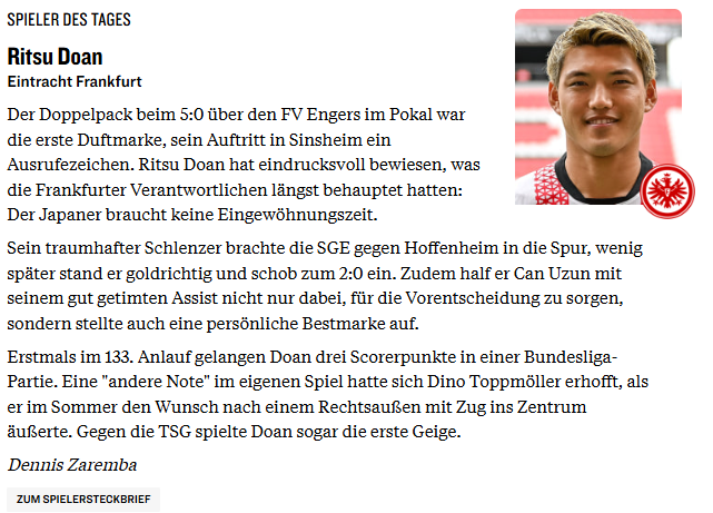 Матч второго тура с «Хоффенхаймом» тоже прошел на высоком уровне – «орлы» победили со счетом 3:1, а героем встречи можно назвать Рицу Доана, который оформил дубль.