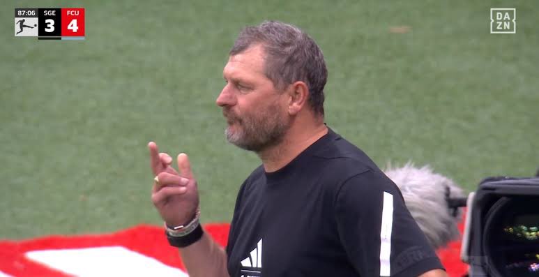В самой концовке первого тайма «Айнтрахт» проснулся и забил два гола, берлинцы все же смогли выстоять и в итоге победили со счетом 4:3. Но команда на следующую игру вновь останется без тренера на бровке – Баумгарт получил очередную красную.