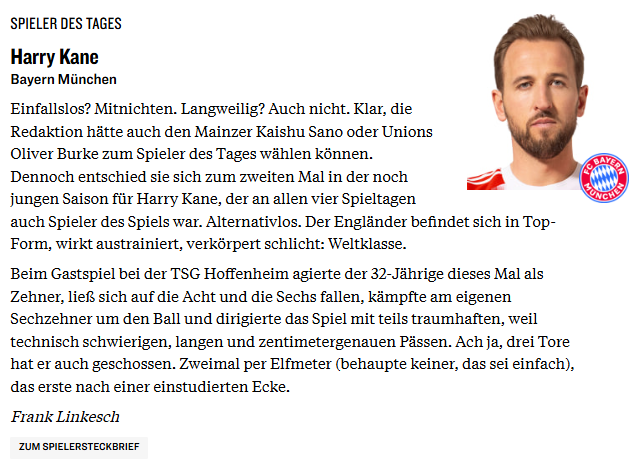 Четвертый тур Бундеслиги и снова крупный счет, на этот раз для «Хоффенхайма» 4:1 в гостях. После тяжелого матча посередине недели «Бавария» как будто до 44-й минуты, пока Кейн не открыл счет, искала ритм и идеи, ведь Компани ротировал состав.