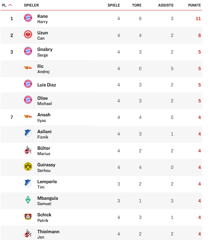 В первом туре Бундеслиги мюнхенцы дома катком прошлись по «РБ Лейпцигу». Взяв почти полчаса на раскачку, с 27-й минуты голы в ворота Гулачи полетели один за другим. До перерыва дубль сделал Олисе и отличился Диас, во втором тайме Кейн оформил хет-трик. Итог: 6:0 и мюнхенцы сразу делают себе такую разницу забитых и пропущенных, чтобы с их первым местом никто не мог поспорить уже после стартового тура.