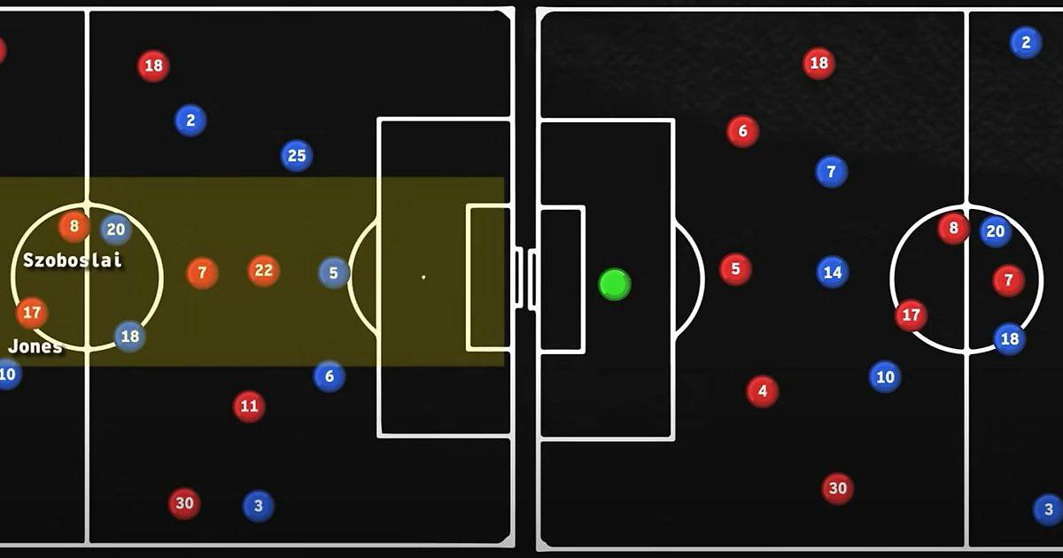 Есть серьёзные отличия от «Парижа». Например, Фримпонг очевидно будет действовать гораздо шире, смещая Салаха в полуфланг. Также, Виртц действует гораздо выше остальных полузащитников.